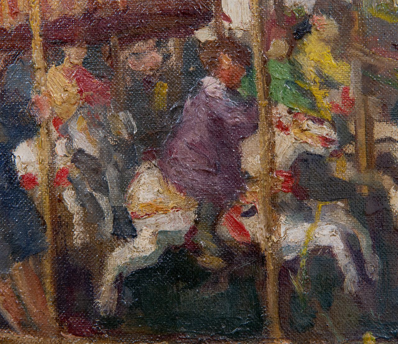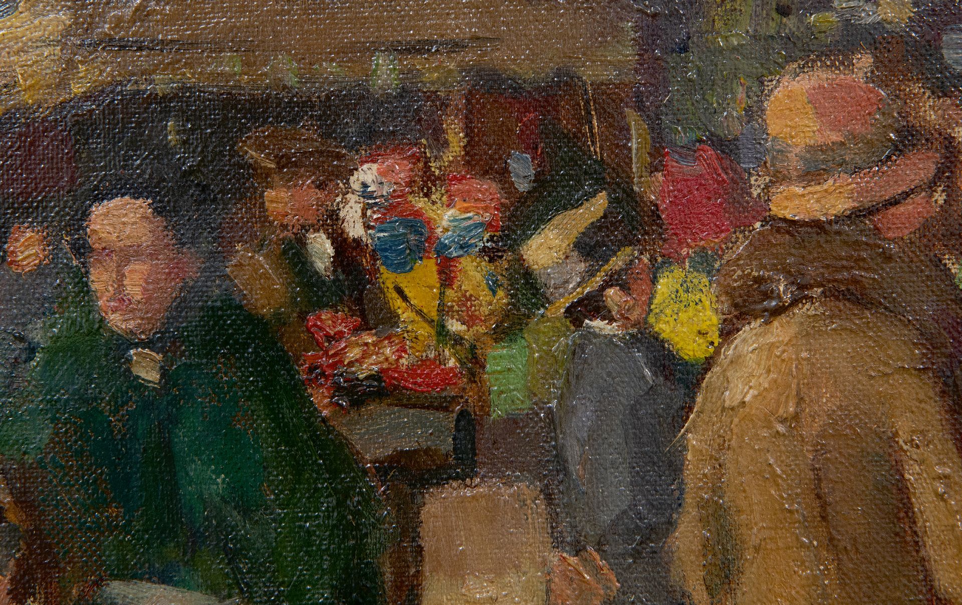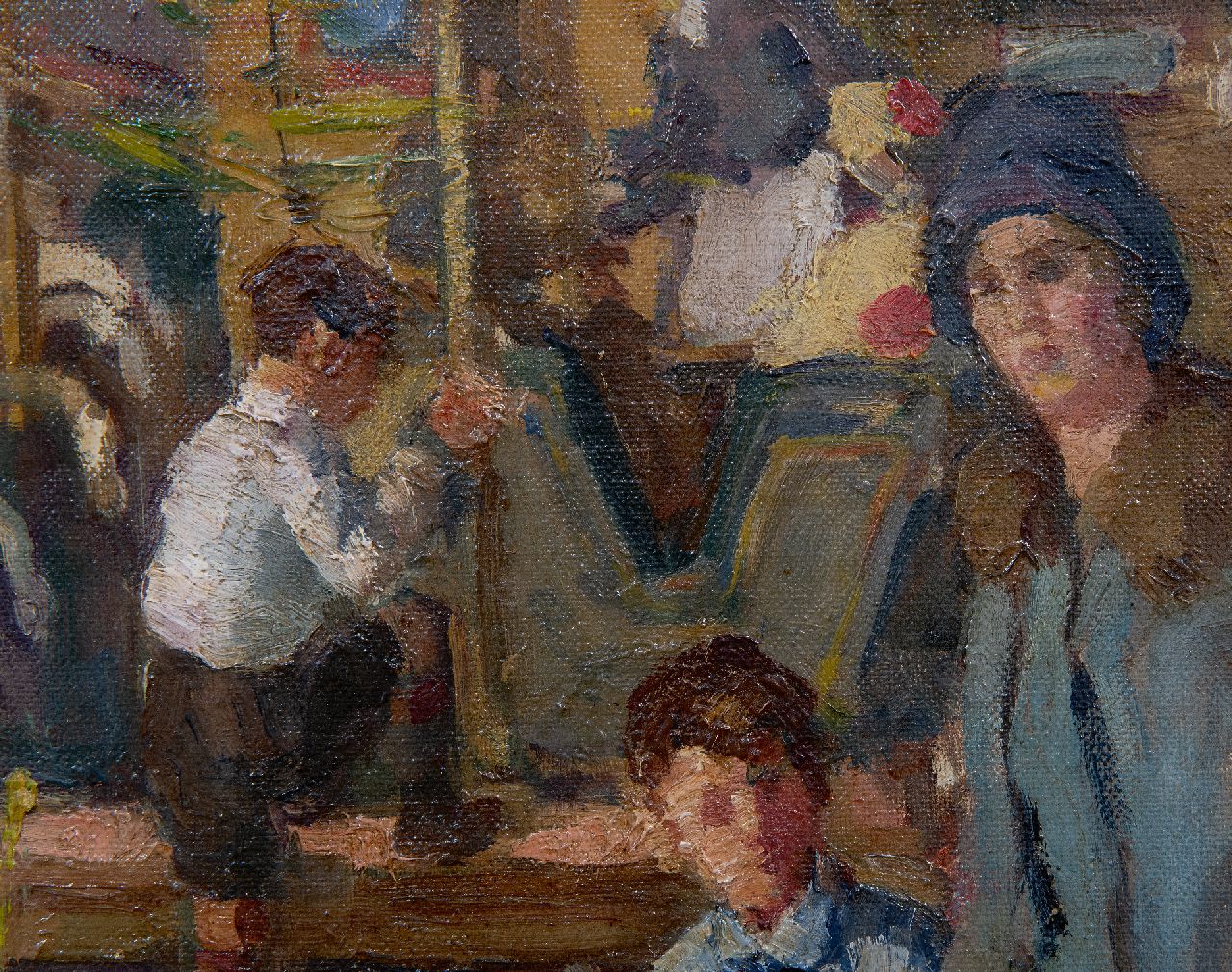 De jong gestorven Haagse schilder Abraham Fresco heeft een klein maar interessant oeuvre nagelaten. Al op de lagere school viel zijn tekentalent op en op advies van zijn onderwijzers ging hij eerst naar de Koninklijke Academie van Beeldende Kunsten in Den Haag en daarna naar de Rijksacademie voor Beeldende Kunst in Amsterdam. In 1928 – Abraham was toen 25 jaar – werd hij in het Joodse weekblad De Vrijdagavond omschreven als een ‘zeer bescheiden, serieuze, hardwerkende jongeman’ voor wie een ‘grote toekomst’ was weggelegd. Aanvankelijk werkte Fresco vooral als portretschilder, maar later legde hij zich meer en meer toe op het schilderen van het stadsleven en genrestukken. Zowel zijn verstilde pleinen als bruisende winkelstraten en voorstellingen van volksfeesten worden gekenmerkt door een krachtige penseelvoering en een schitterend coloriet. Abraham Fresco, zijn vrouw Debora Engelsman en hun dochter Marga zijn in 1942 opgepakt en op transport gesteld. Op 19 november 1942 werden ze in Auschwitz vermoord.
