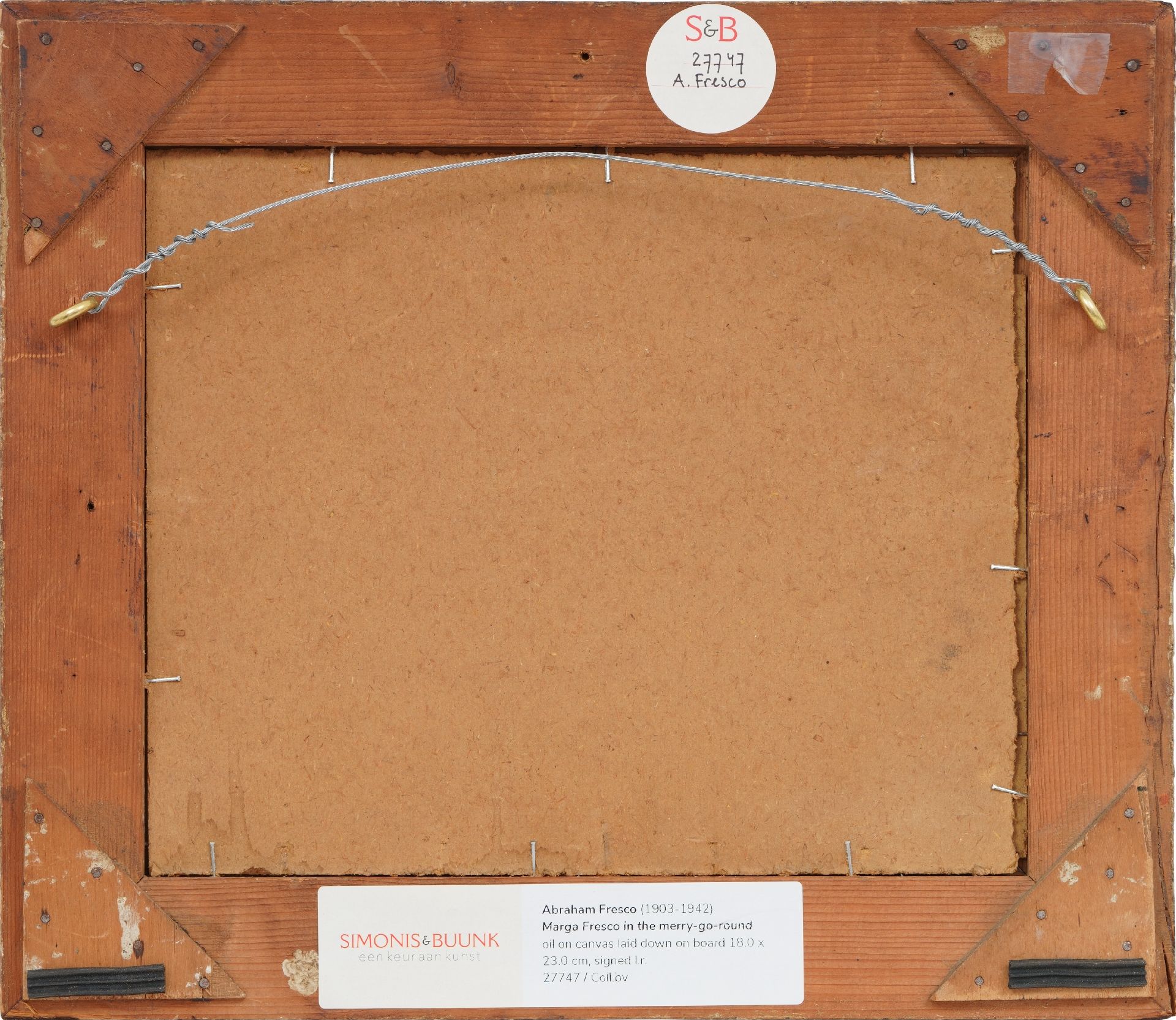De jong gestorven Haagse schilder Abraham Fresco heeft een klein maar interessant oeuvre nagelaten. Al op de lagere school viel zijn tekentalent op en op advies van zijn onderwijzers ging hij eerst naar de Koninklijke Academie van Beeldende Kunsten in Den Haag en daarna naar de Rijksacademie voor Beeldende Kunst in Amsterdam. In 1928 – Abraham was toen 25 jaar – werd hij in het Joodse weekblad De Vrijdagavond omschreven als een ‘zeer bescheiden, serieuze, hardwerkende jongeman’ voor wie een ‘grote toekomst’ was weggelegd. Aanvankelijk werkte Fresco vooral als portretschilder, maar later legde hij zich meer en meer toe op het schilderen van het stadsleven en genrestukken. Zowel zijn verstilde pleinen als bruisende winkelstraten en voorstellingen van volksfeesten worden gekenmerkt door een krachtige penseelvoering en een schitterend coloriet. Abraham Fresco, zijn vrouw Debora Engelsman en hun dochter Marga zijn in 1942 opgepakt en op transport gesteld. Op 19 november 1942 werden ze in Auschwitz vermoord.
