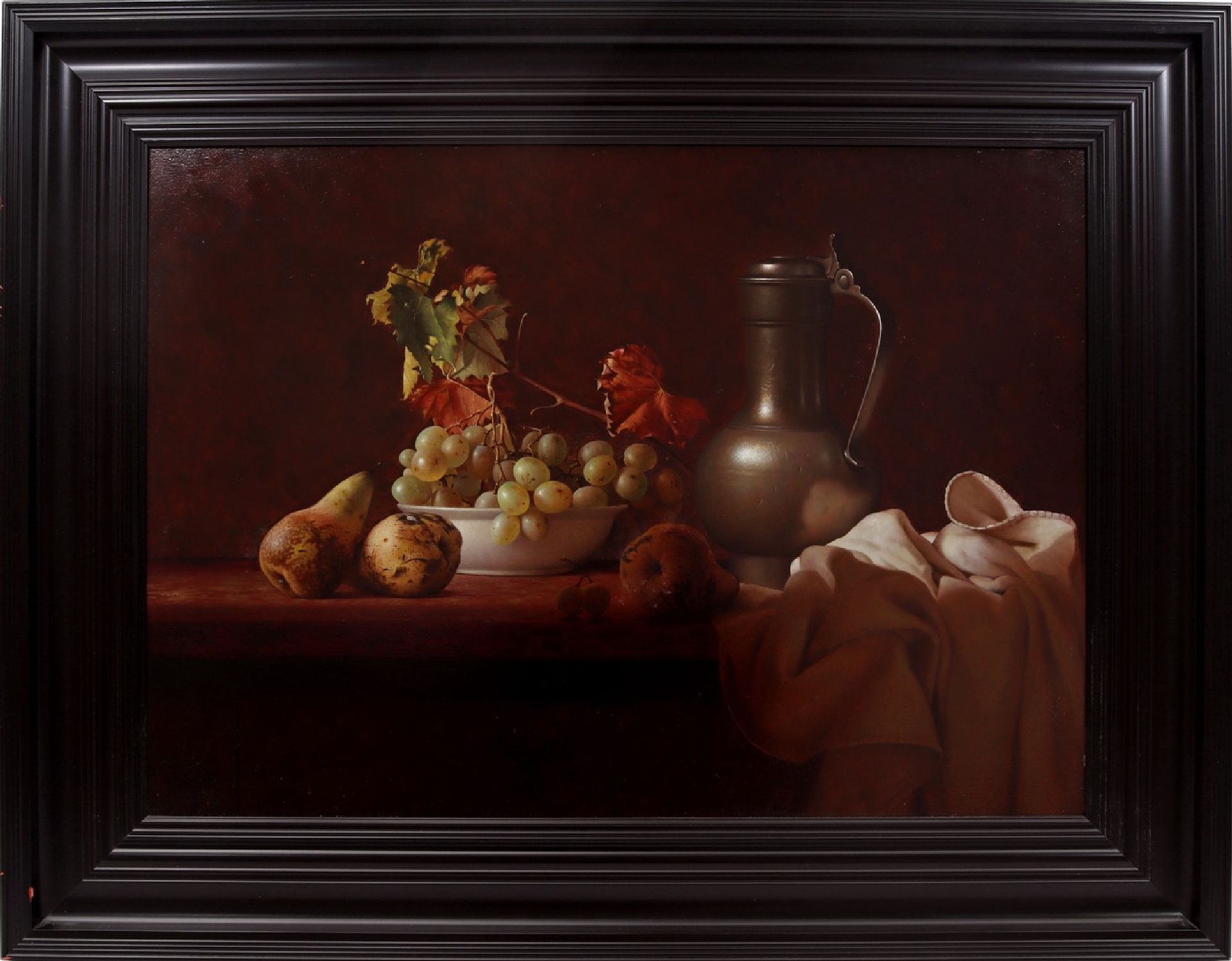 Andreas Gyula Bubarnik kunstwerk • schilderij • te koop Stilleven van fruit en tinnen kan op een tafel