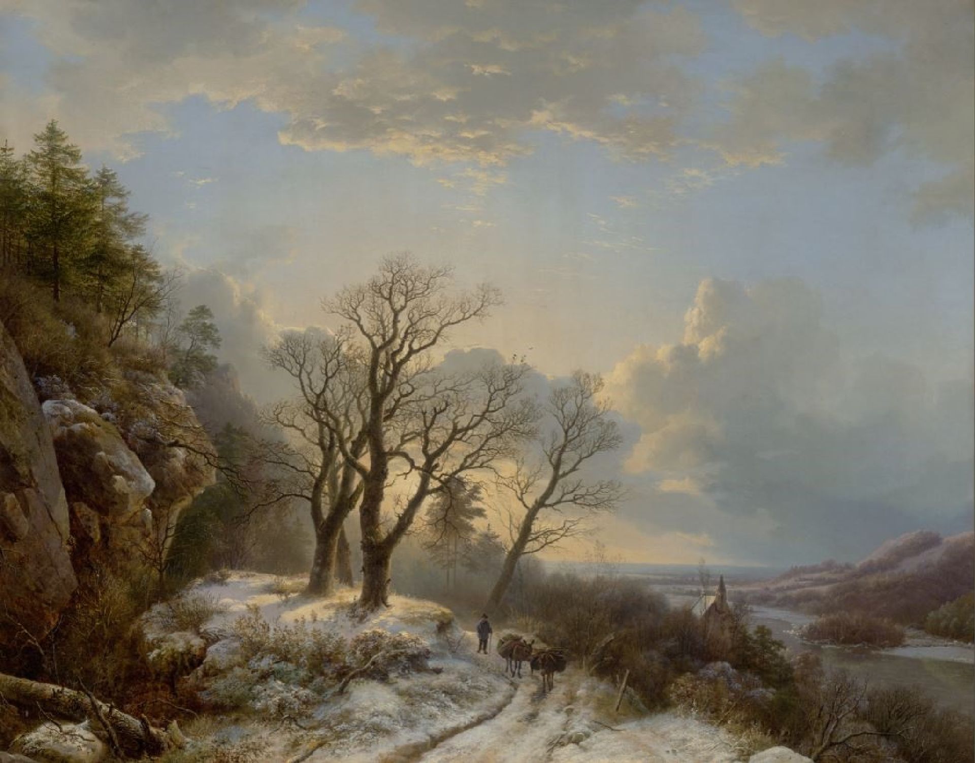 Barend Cornelis Koekkoek kunstwerk • schilderij • te koop Winterlandschap met herder en vee