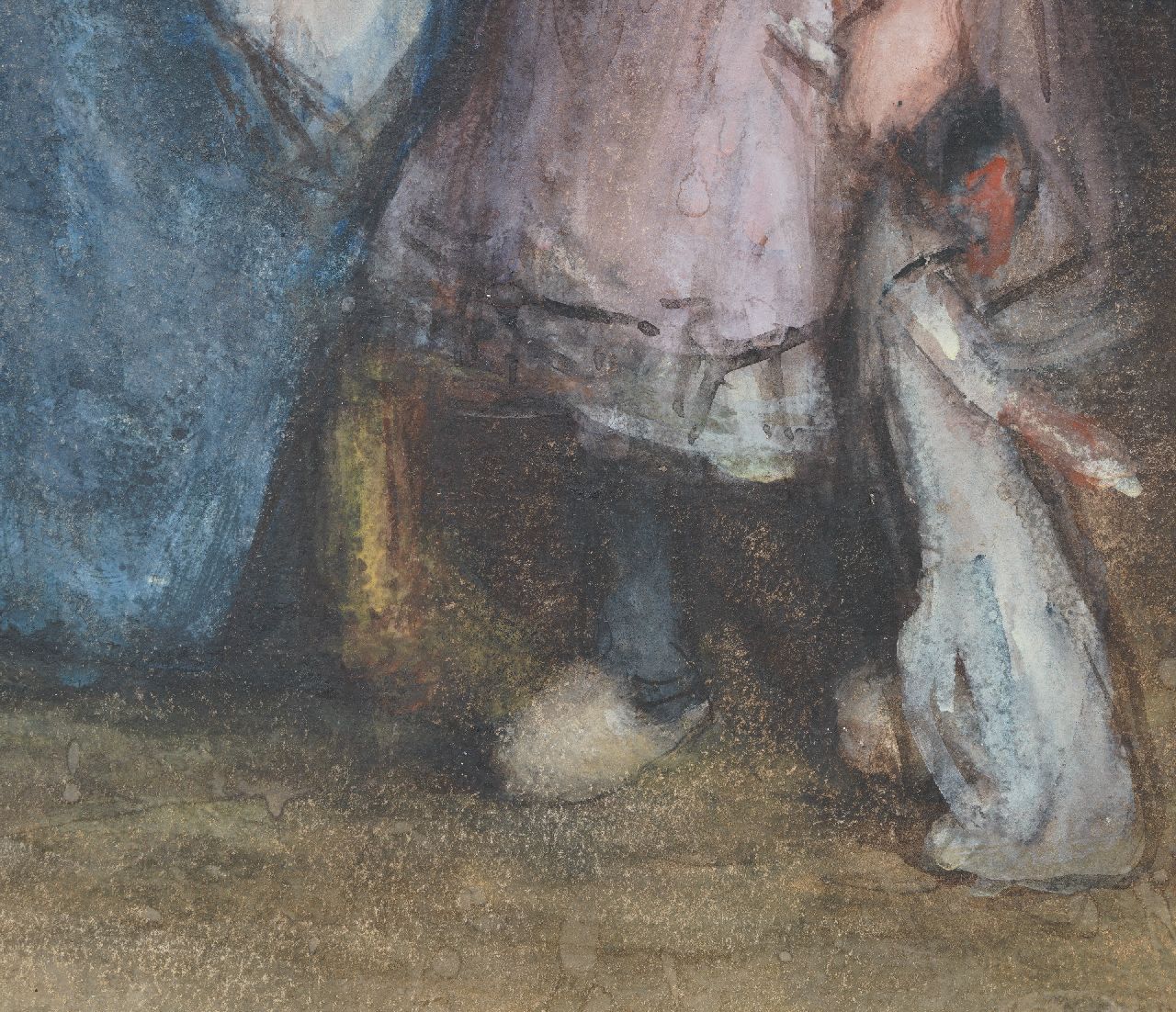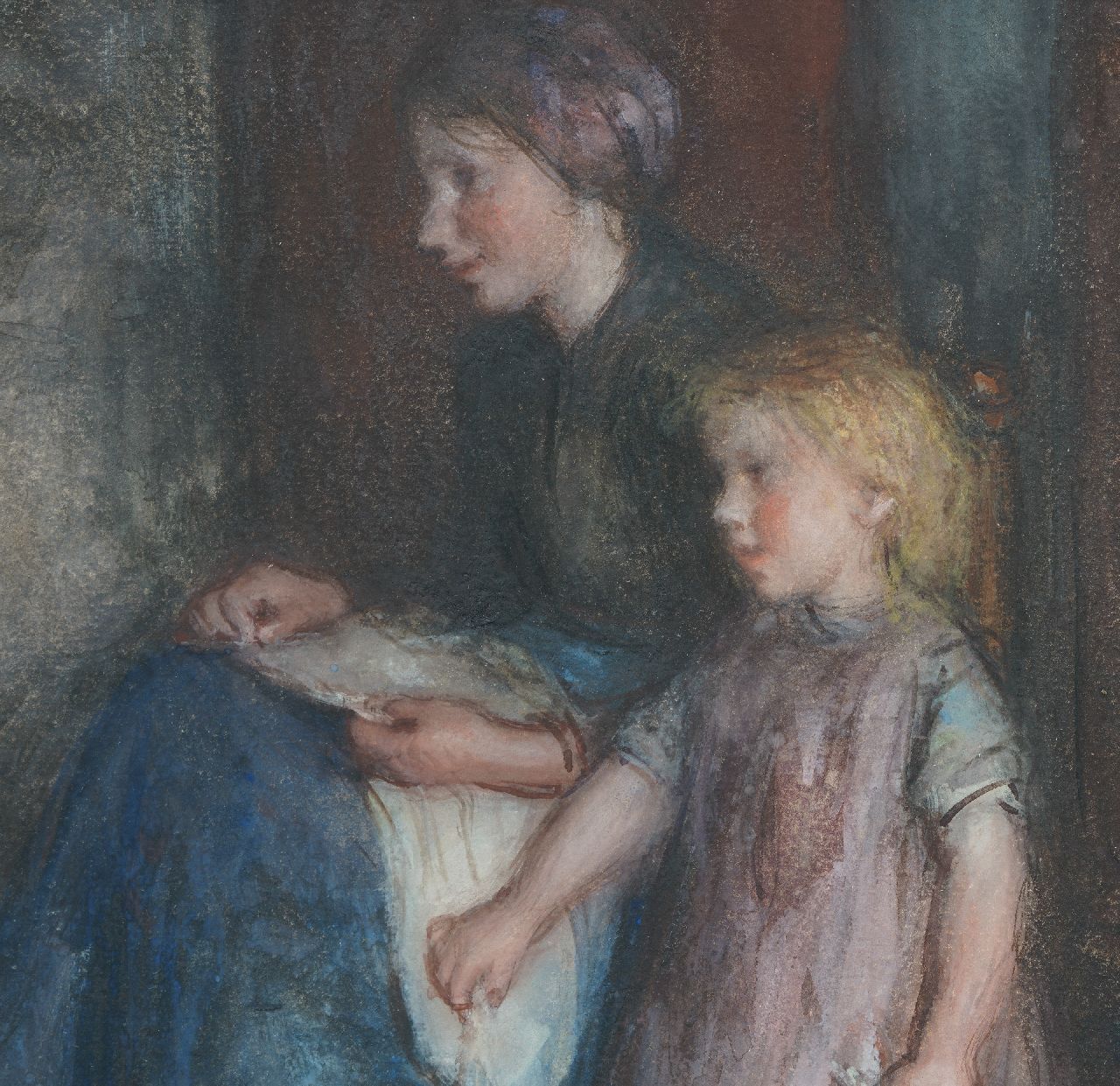 Bernard Blommers kunstwerk • aquarel • tekening • te koop Vissersfamilie bij de haard