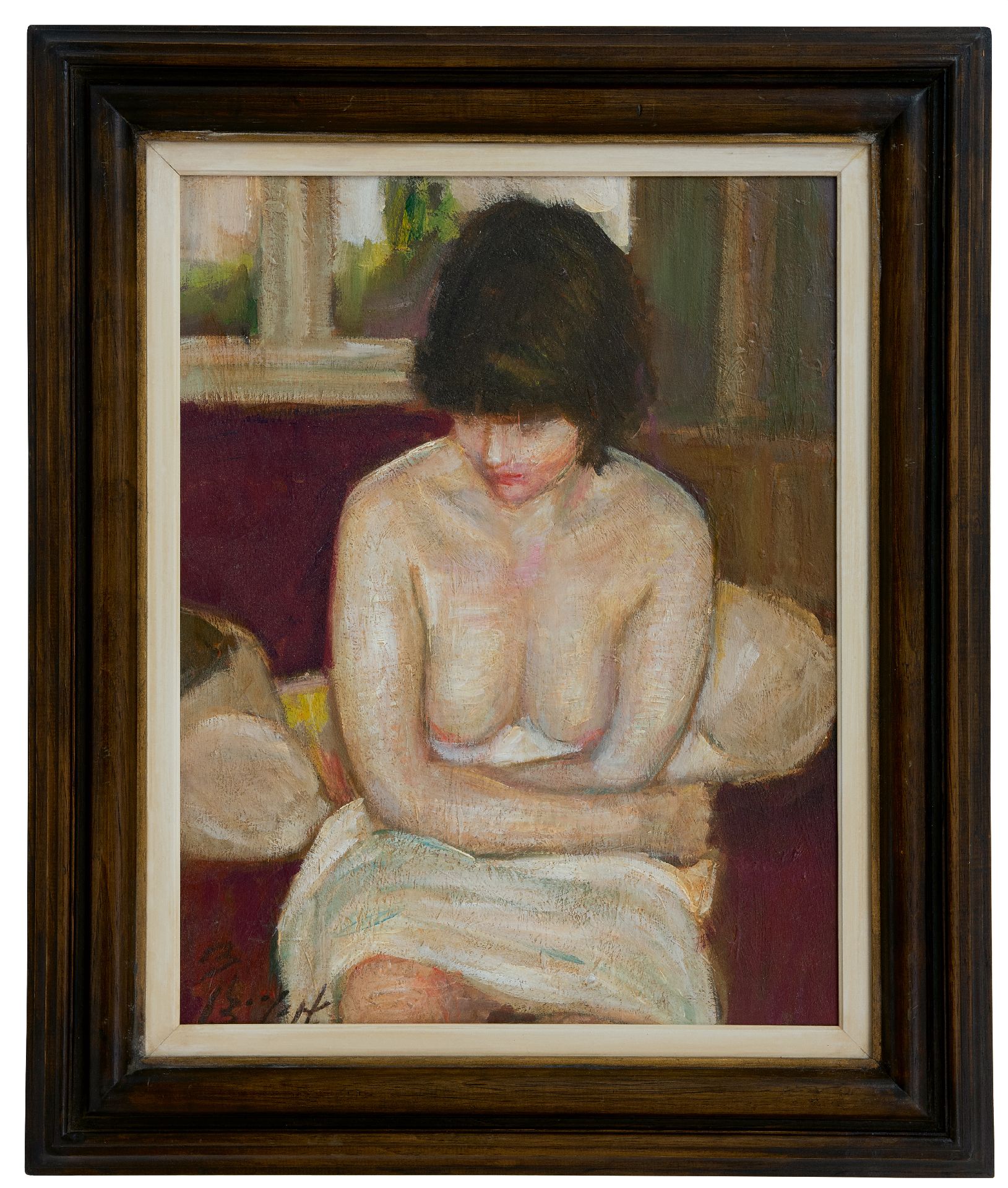 Bram Bogart kunstwerk • schilderij • te koop Zittend naakt i.o.