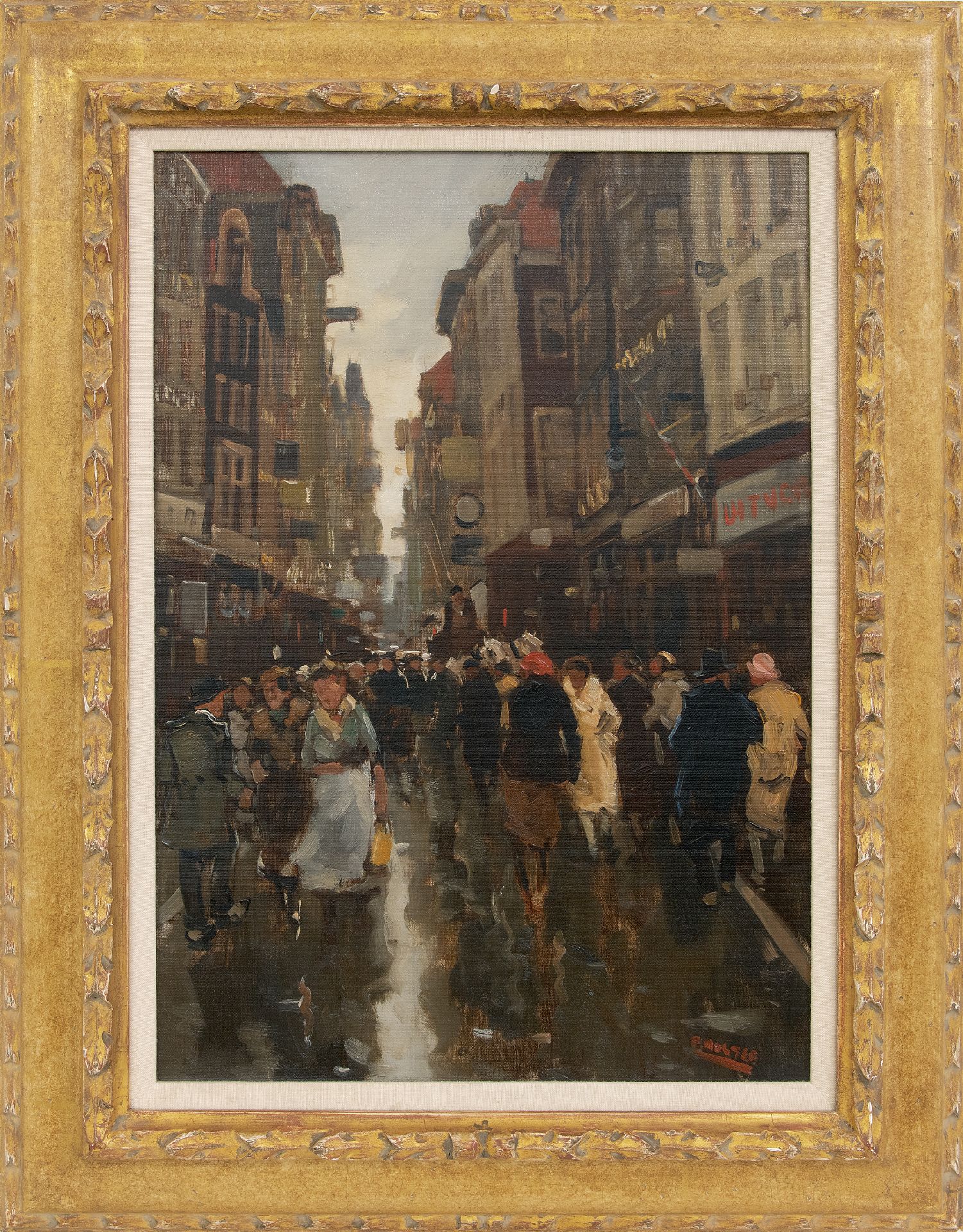 Cor Noltee kunstwerk • schilderij • te koop Drukbevolkte winkelstraat/Spuistraat, Den Haag