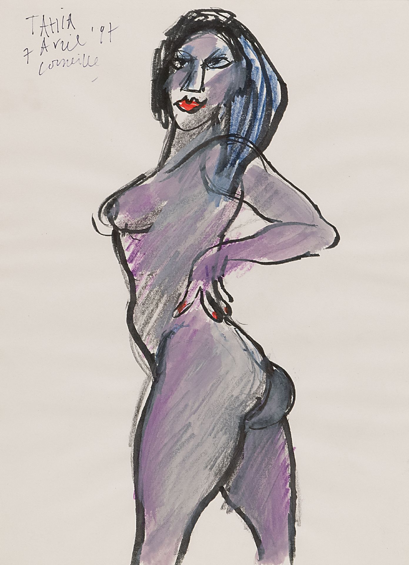 potlood, inkt, waskrijt en aquarel op papier 30,5 x 22,7 cm, gesigneerd linksboven en gedateerd 7 'Avril' '97