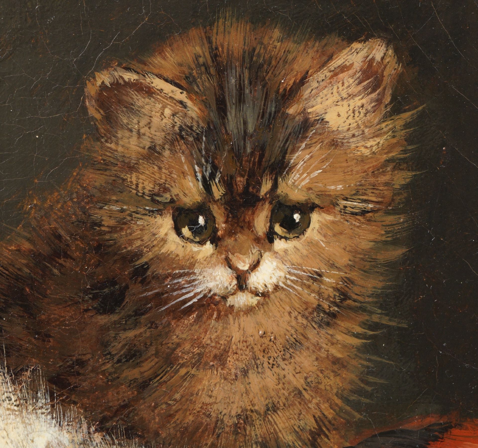 Cornelis Raaphorst kunstwerk • schilderij • te koop Kittens spelend op een sierkussen