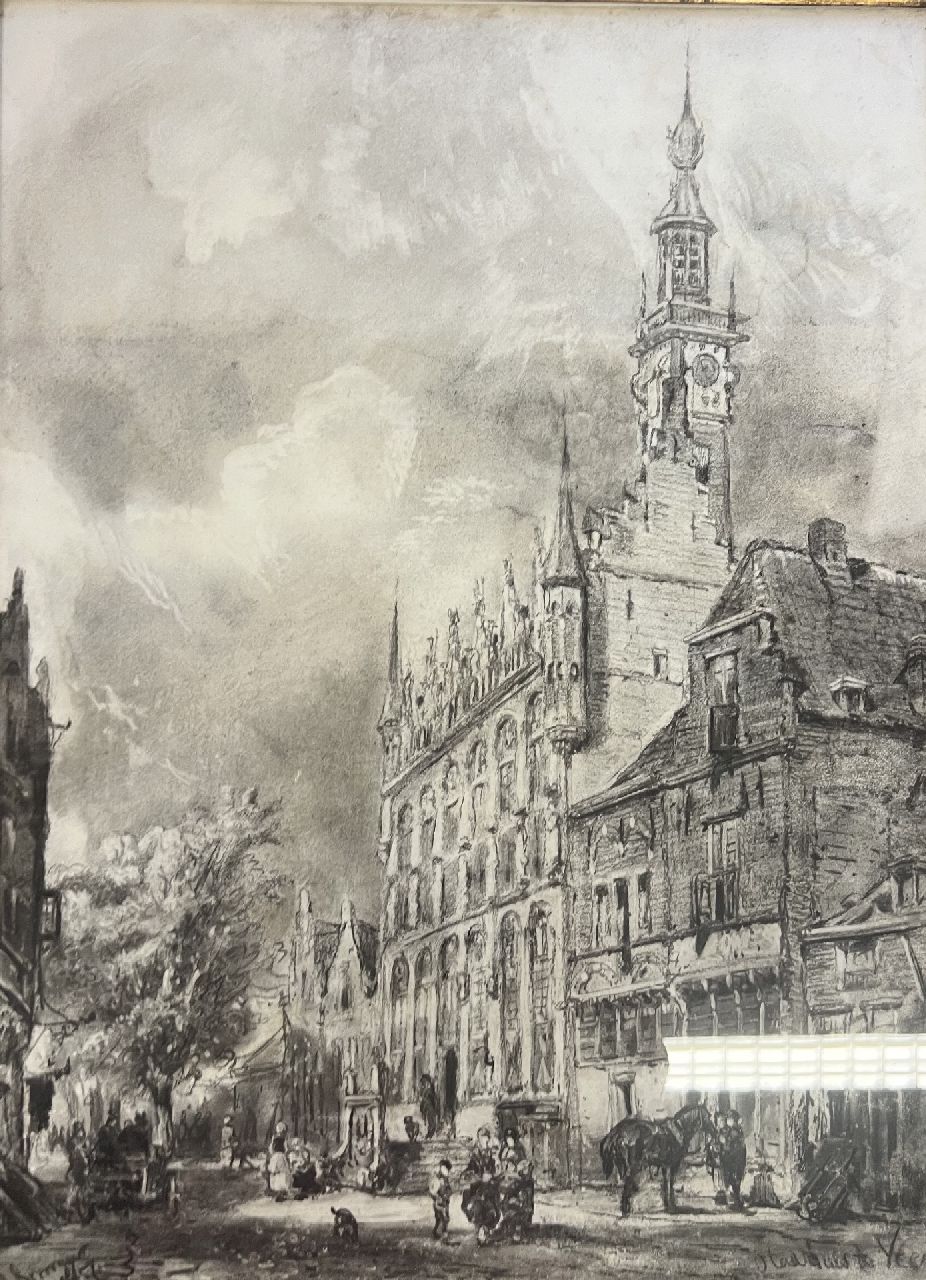 Cornelis Springer kunstwerk • aquarel • tekening • te koop Het stadhuis te Veere