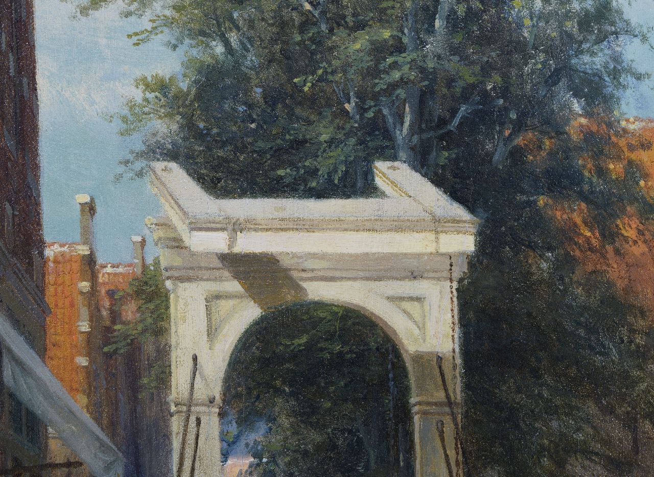 Cornelis Springer schilderde vooral stads- en dorpsgezichten waarin gevels en levendige stoffage baden in een warm zonlicht. Samen met Barend Cornelis Koekkoek en Andreas Schelfhout behoort hij tot de belangrijkste schilders van de Hollandse romantiek. In zijn schilderijen is vaak een prominente plaats toebedeeld aan gebouwen uit de 17e en 18e eeuw. Soms is dit een fantasie-architectuur, maar in de meeste gevallen waren dit bestaande gebouwen waarvan men rond 1850 de schoonheid 'herontdekte'. Springer maakte van deze gebouwen meestal eerst een uitvoerige schets, die hij dan later tot schilderij uitwerkte.
