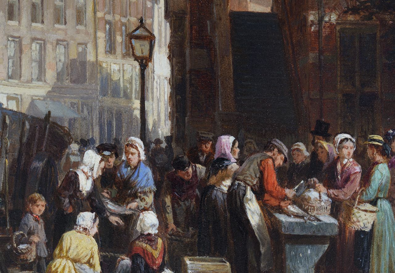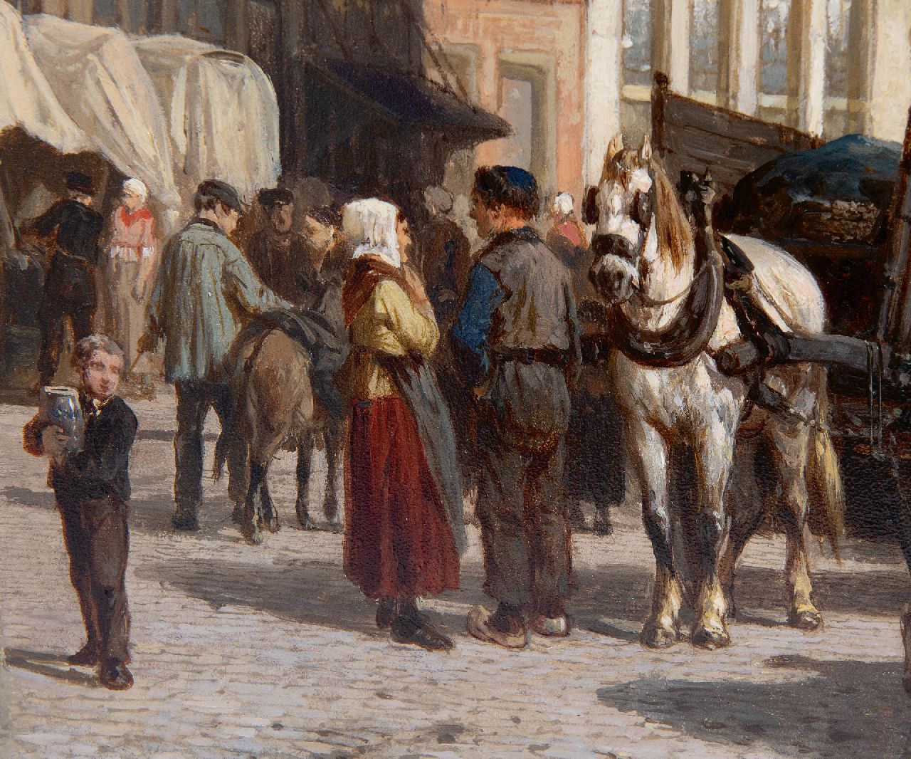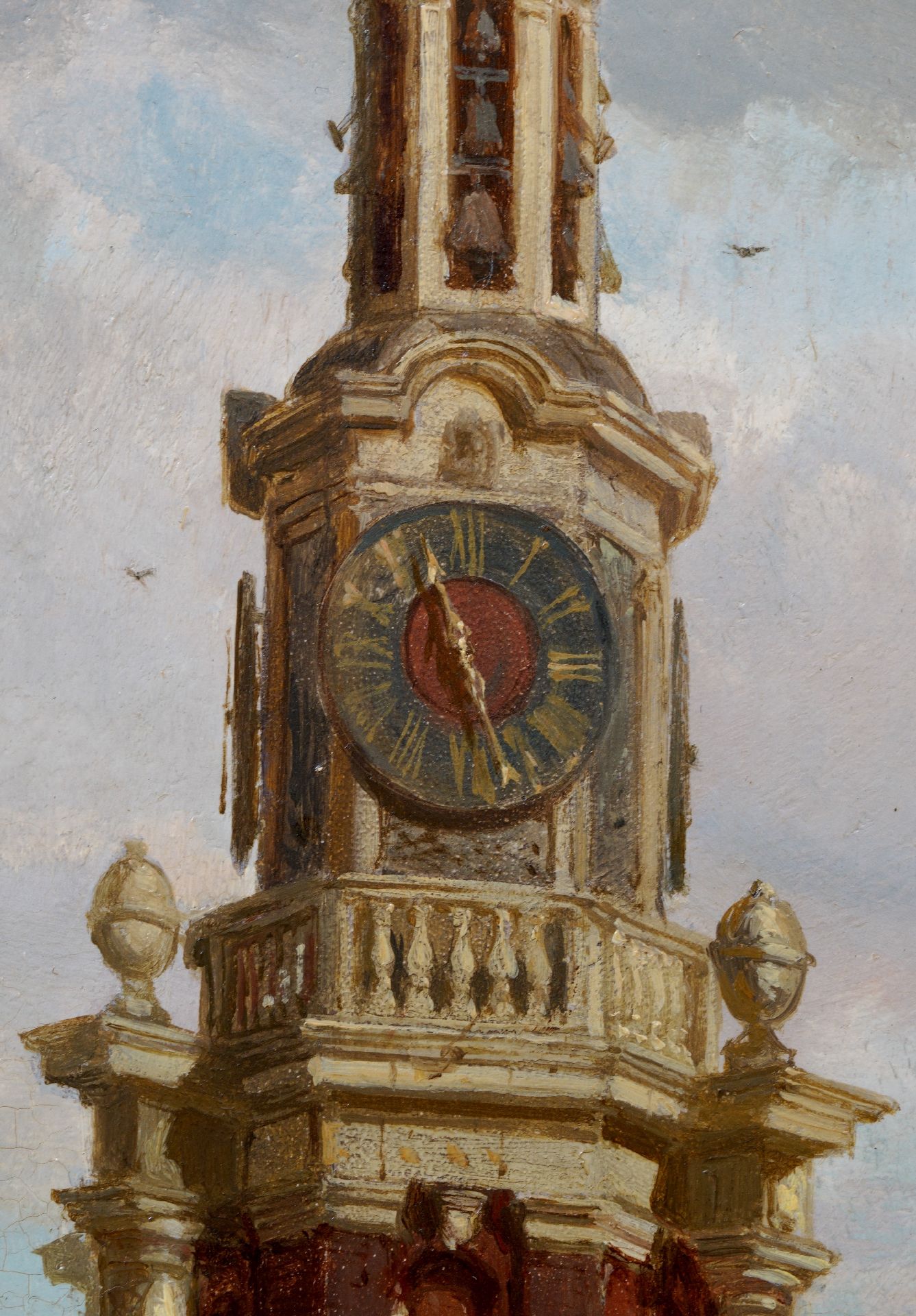 Cornelis Springer kunstwerk • schilderij • voorheen te koop Drukbevolkte markt voor de Wijnhuistoren in Zutphen