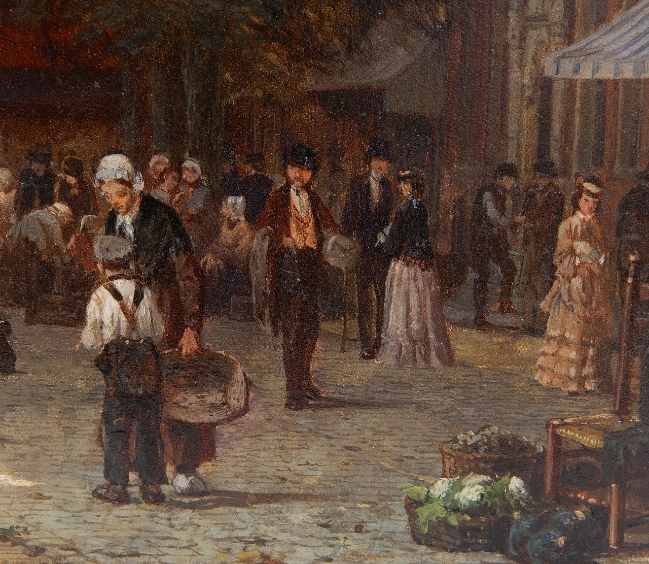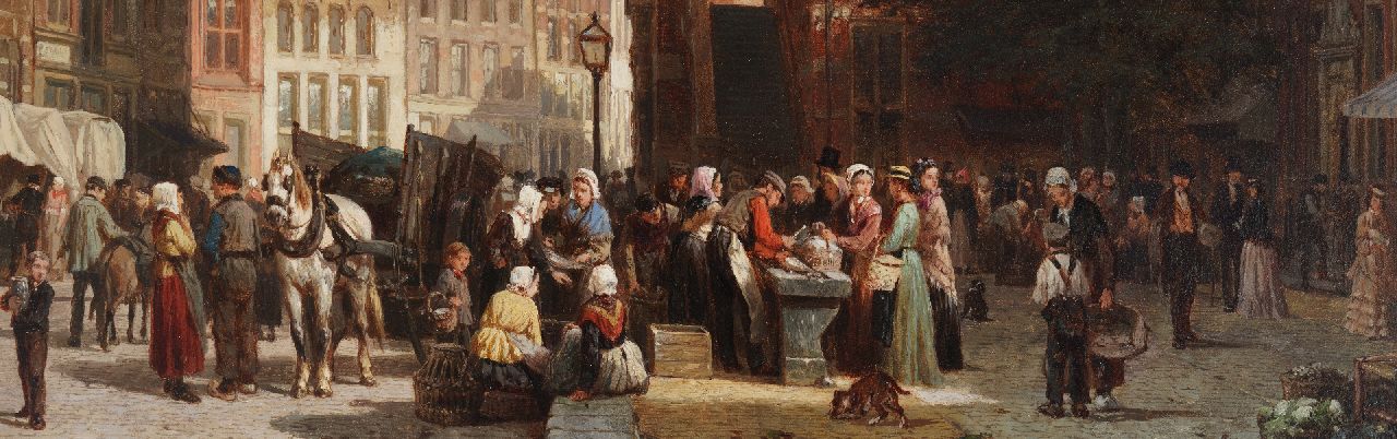 annotatie Met verso authenticiteitsverklaring van de schilder op verzegeld etiket: 'Le soussigné declare que ce tableau represente le marché A la maison d'impots a Zutphen (province de Gelderland, Pays Bas) est peint par lui, Amsterdam 2 Mars 72. C. Springer'