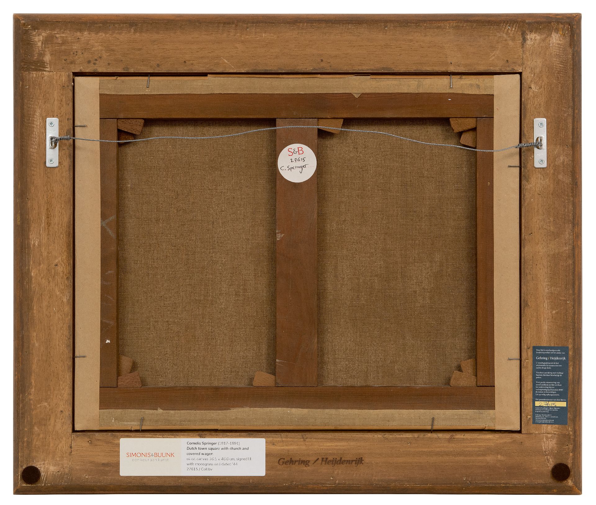 Cornelis Springer schilderde vooral stads- en dorpsgezichten waarin gevels en levendige stoffage baden in een warm zonlicht. Samen met Barend Cornelis Koekkoek en Andreas Schelfhout behoort hij tot de belangrijkste schilders van de Hollandse romantiek. In zijn schilderijen is vaak een prominente plaats toebedeeld aan gebouwen uit de 17e en 18e eeuw. Soms is dit een fantasie-architectuur, maar in de meeste gevallen waren dit bestaande gebouwen waarvan men rond 1850 de schoonheid 'herontdekte'. Springer maakte van deze gebouwen meestal eerst een uitvoerige schets, die hij dan later tot schilderij uitwerkte.
