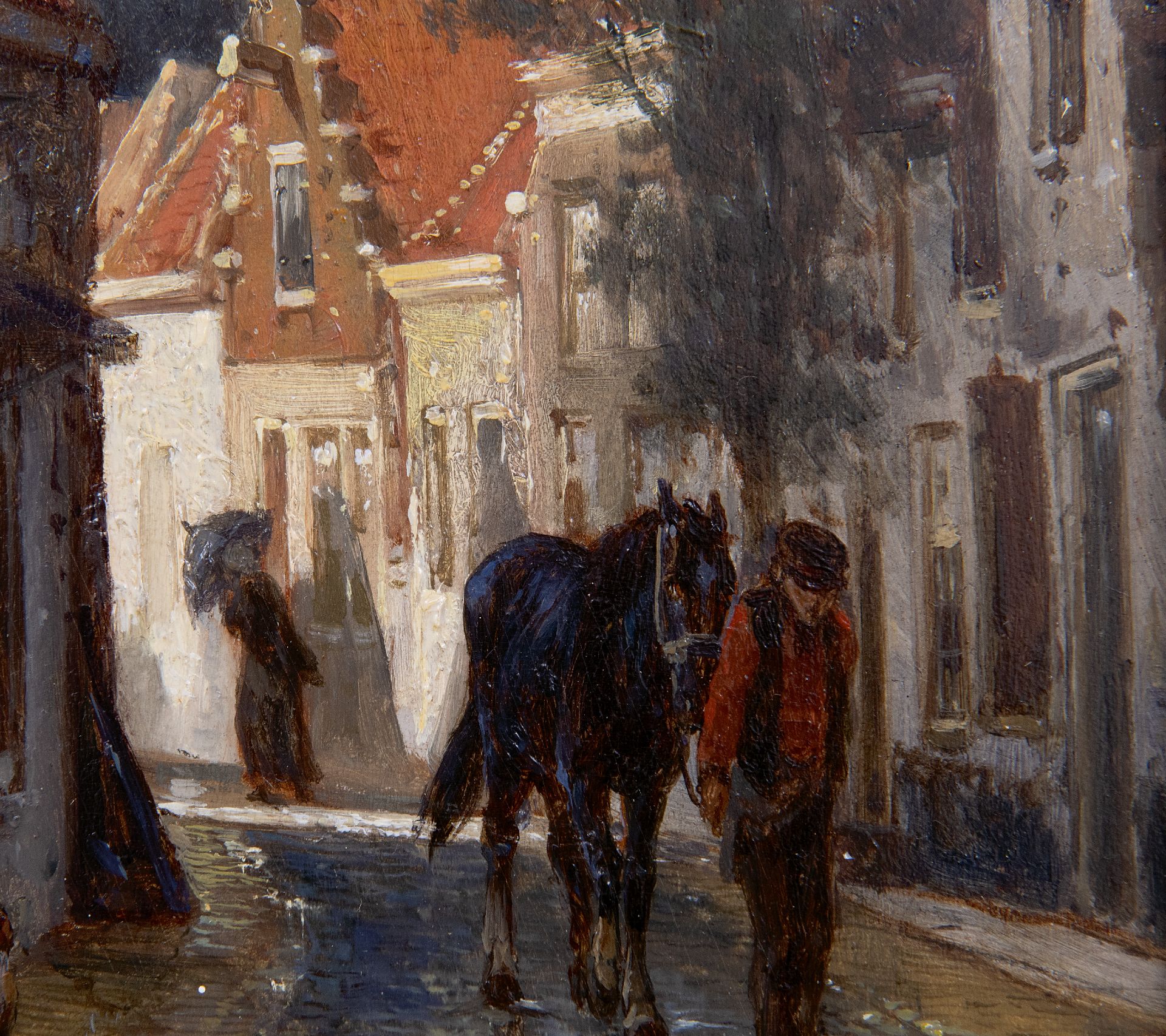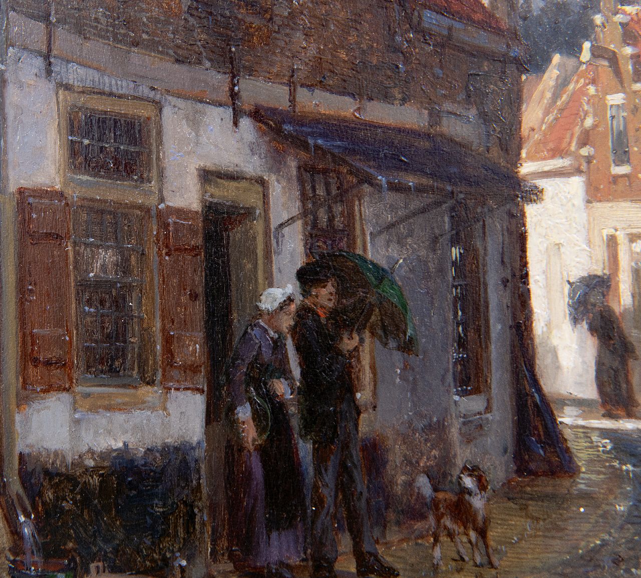 Cornelis Springer kunstwerk • schilderij • voorheen te koop Regenachtig straatje in Oudewater