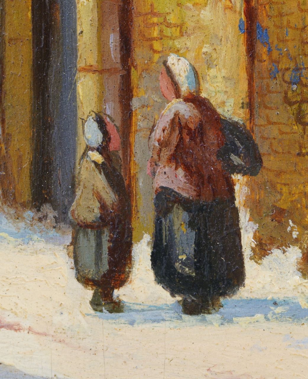 Elias Pieter van Bommel kunstwerk • schilderij • te koop Winters stadsgezicht met de Oude Kerk van Delft (naar A. Eversen)