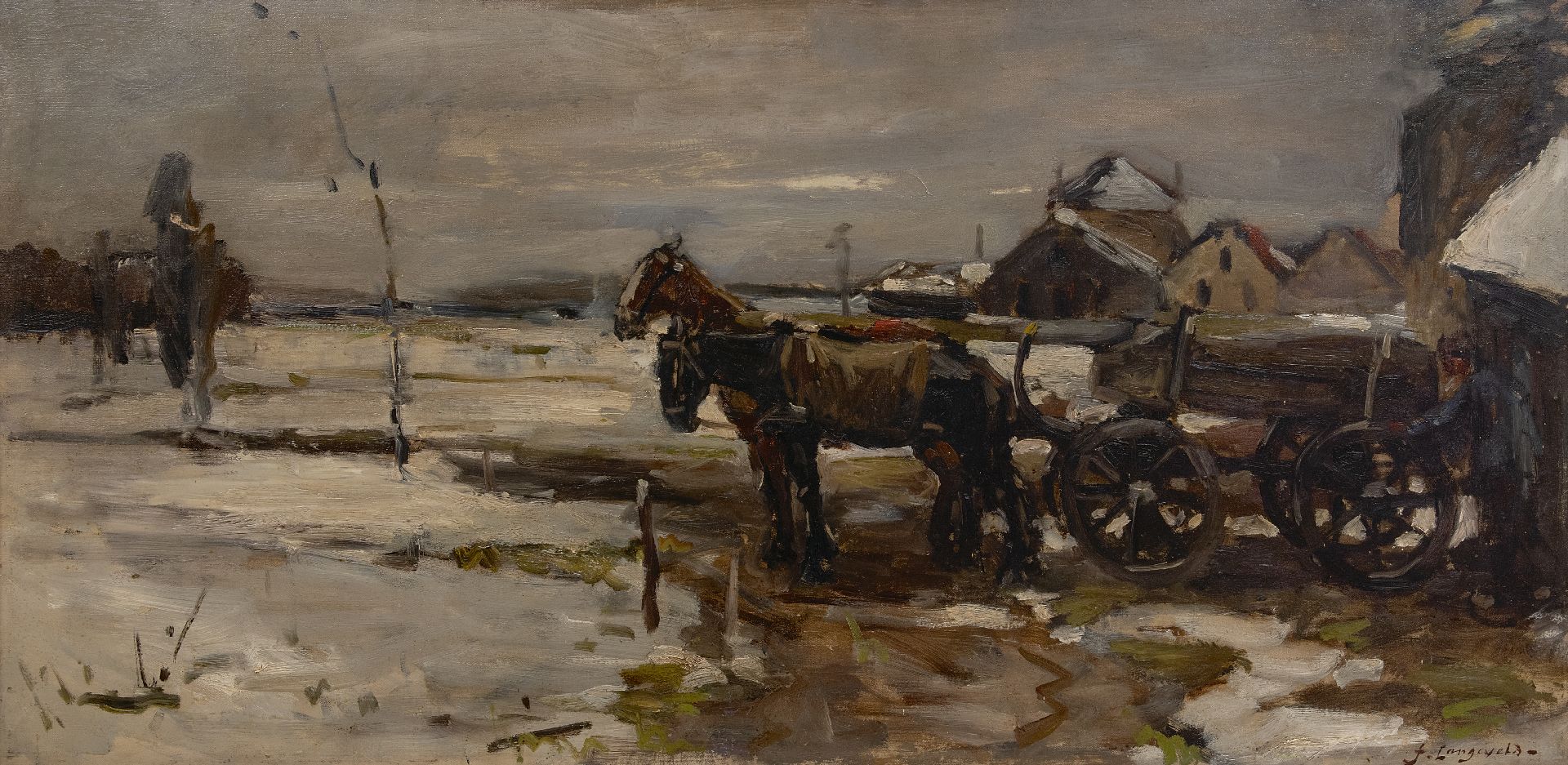 Frans Langeveld kunstwerk • schilderij • te koop Paard en wagen in de sneeuw