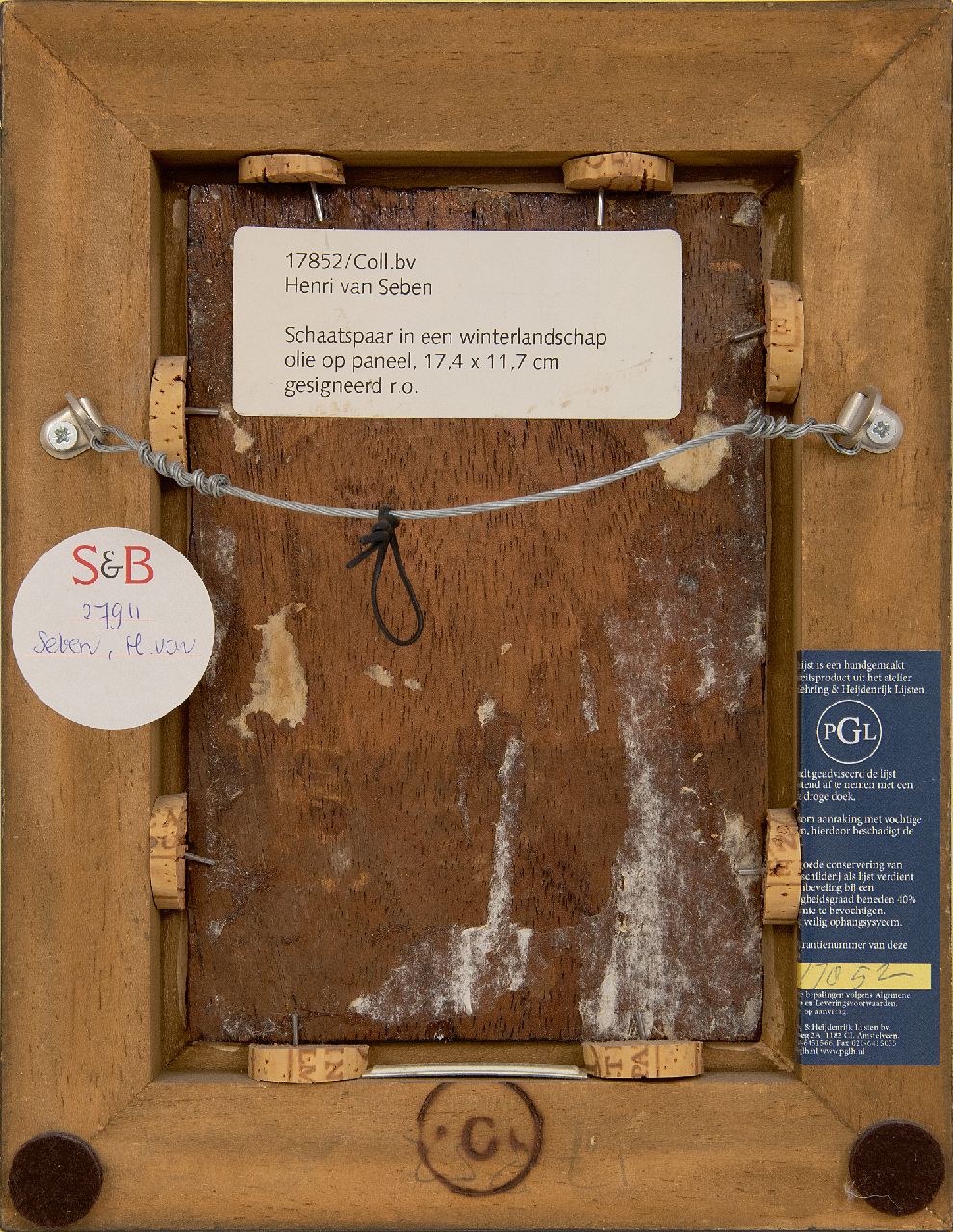 De Belg Henri van Seben schilderde voornamelijk levendige genrevoorstellingen en landschappen die opvallen door een uiterst precieze uitwerking. Al op jonge leeftijd kwam hij als wees naar Den Haag, waar hij les kreeg van Huib van Hove en een opleiding volgde aan de Haagse Academie (1839-1849). Dit leidde ertoe dat hij zijn hele leven sfeervolle Hollandse ijsgezichten schilderde, ook nadat hij rond 1850 terugkeerde naar België en zich vestigde in Elsene. Van Seben was ook een vaardig aquarellist en oprichter van de Société Belge des Aquarellistes.
