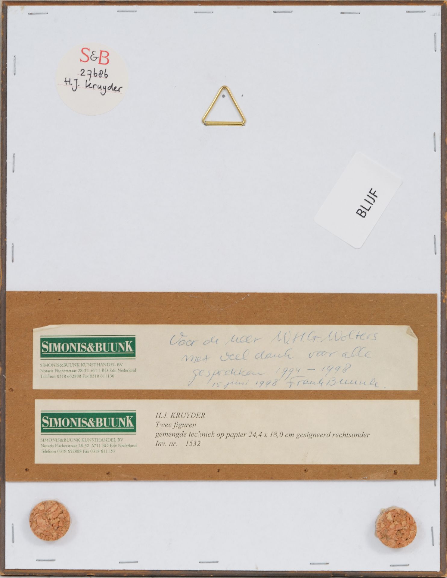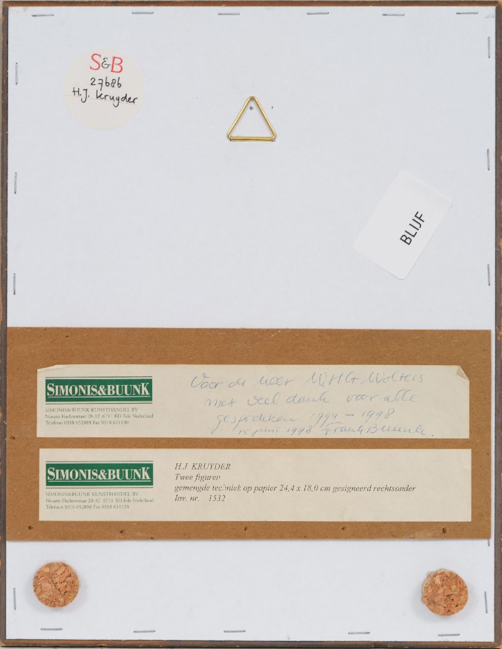 Kruyder H.J.  | 'Herman' Justus Kruyder | Aquarellen en tekeningen te koop aangeboden | Twee figuren, gemengde techniek op papier 24,4 x 18,0 cm, gesigneerd rechtsonder
