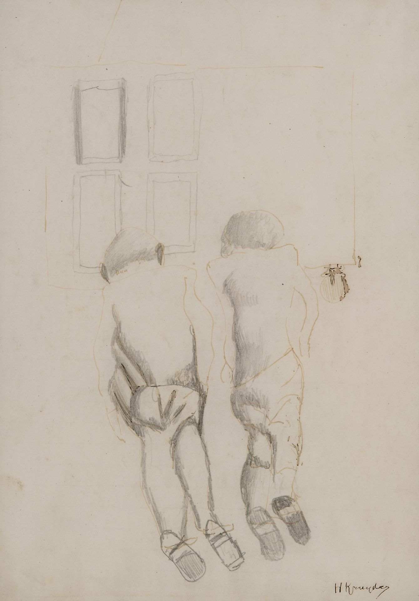 Herman Kruyder | Schommelend kind, potlood op papier, 21,9 x 11,7 cm, gesigneerd r.o.