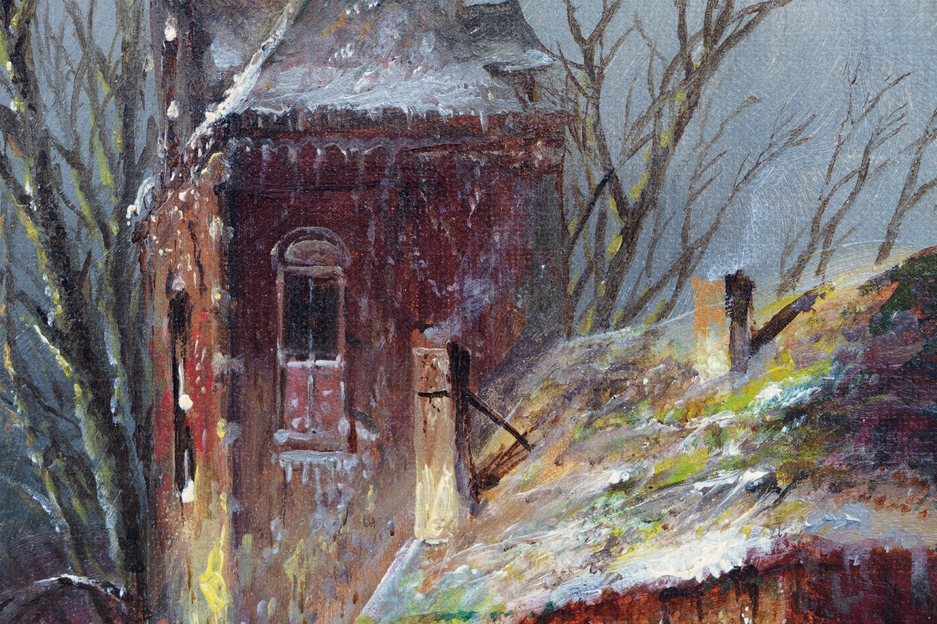 Jacob Jan Coenraad Spohler kunstwerk • schilderij • voorheen te koop Schaatsers op het ijs bij naderende sneeuwstorm