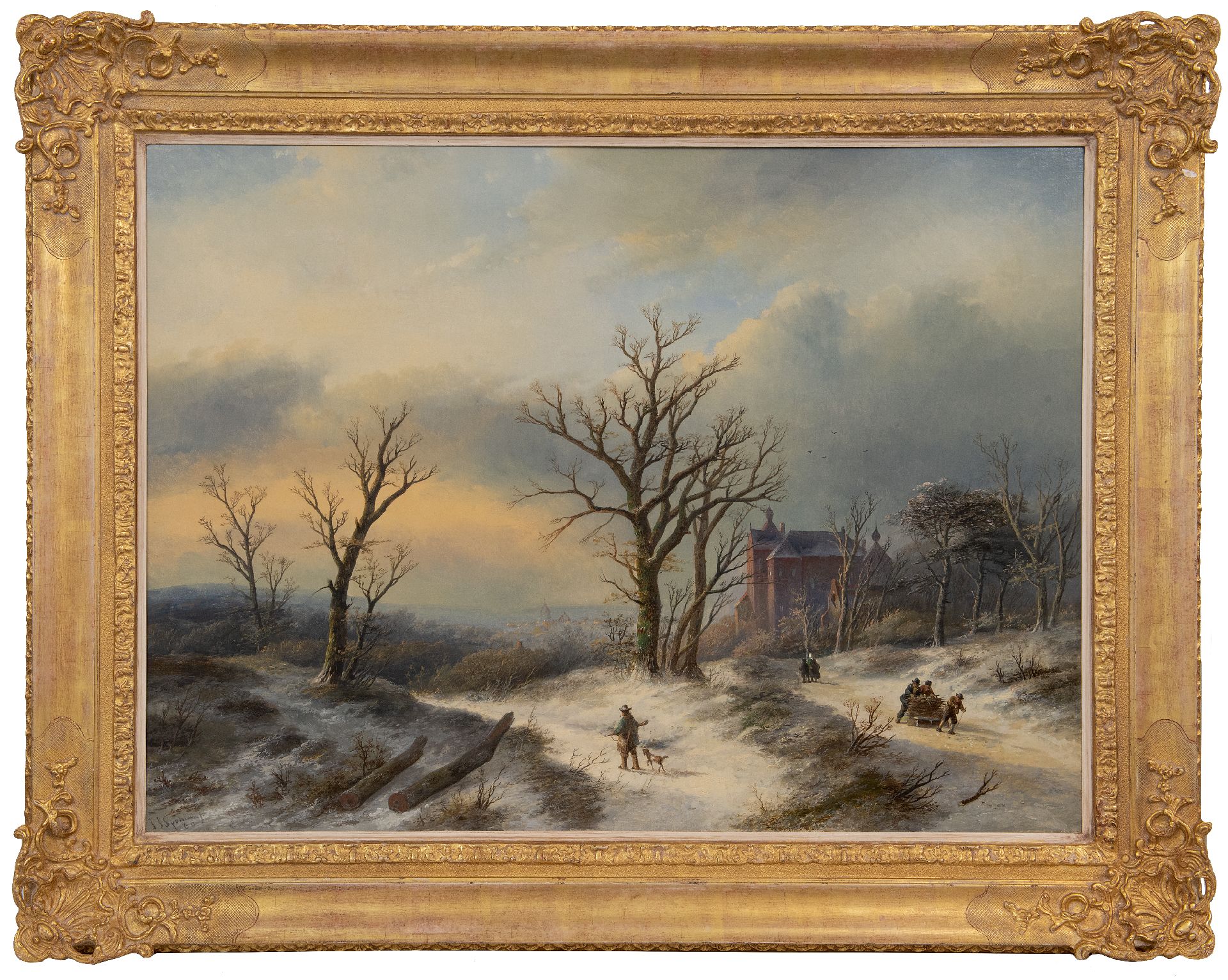 Jan Jacob Spohler kunstwerk • schilderij • te koop Winterlandschap met jagers en houthakkers