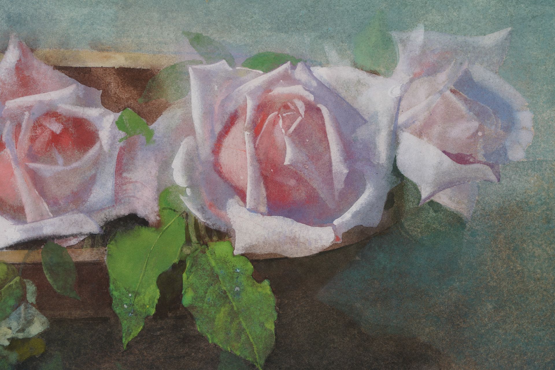 Jan Voerman sr. kunstwerk • aquarel • tekening • te koop Schaal met La France-rozen