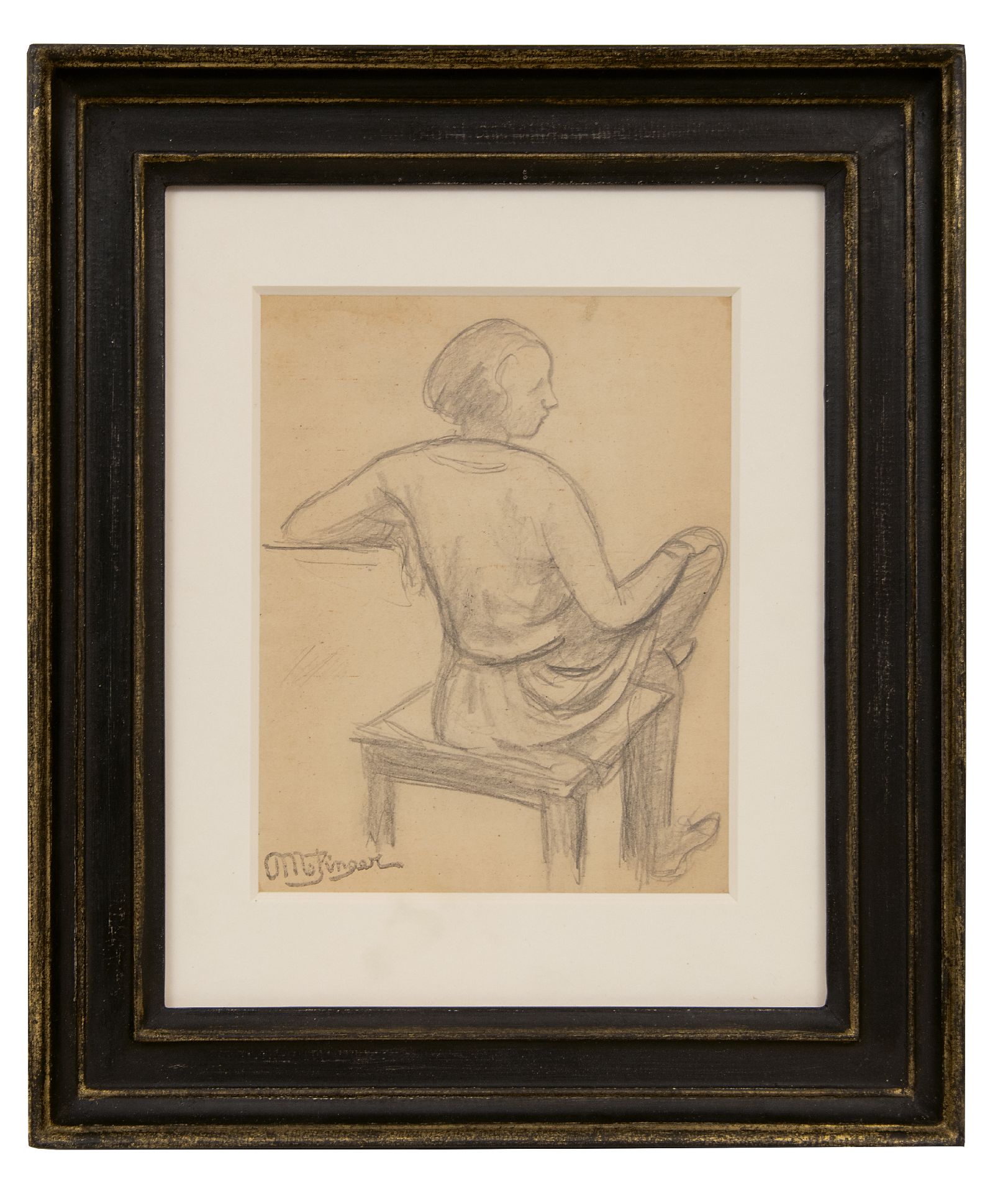 potlood op papier 15,5 x 11,0 cm, gesigneerd linksonder en verso met kunstenaarsstempel
