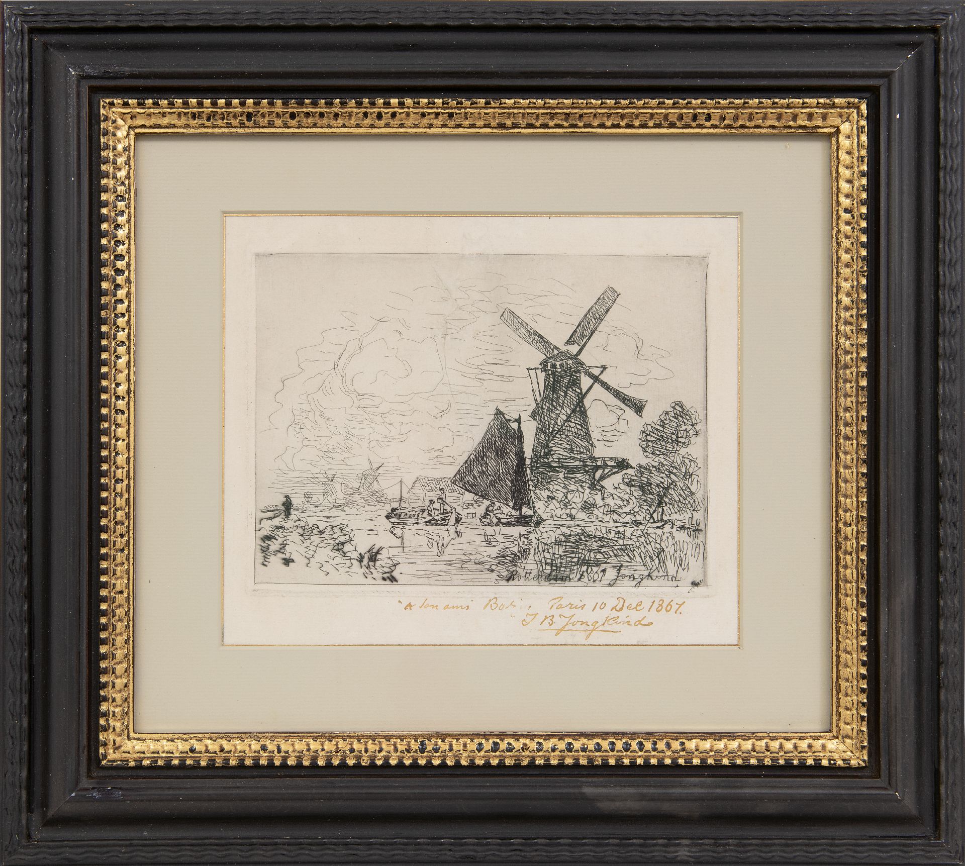 annotatie rechtsonder op het blad: ''à son ami Bar[?] Paris 10 Dec 1867. J.B. Jongkind'
