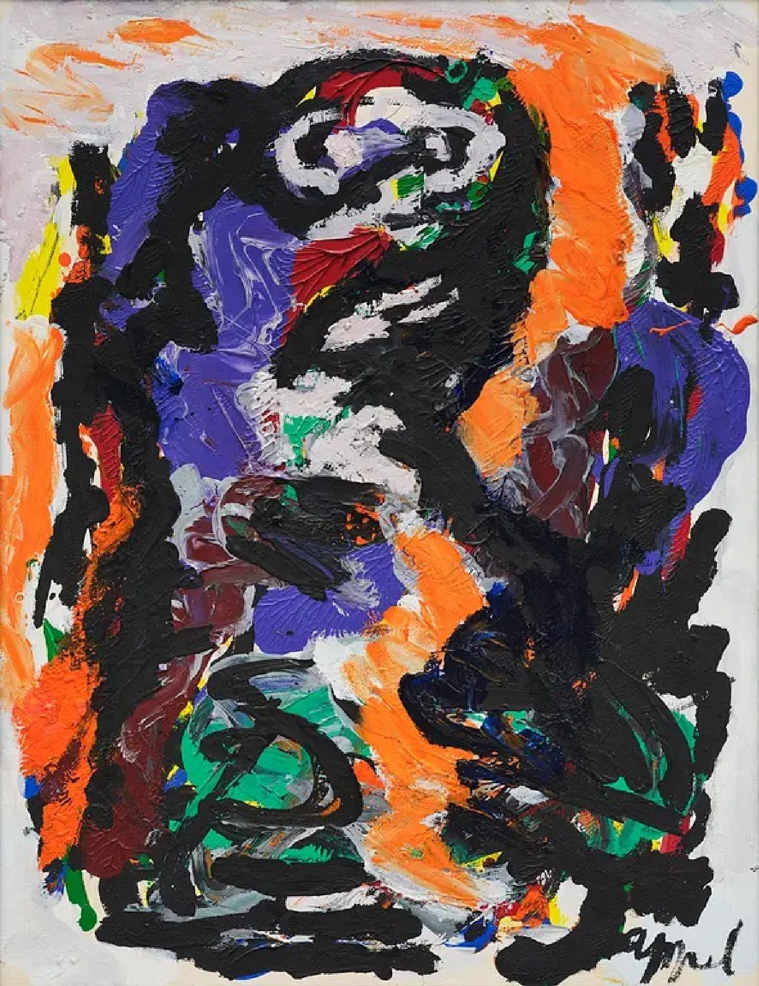 Karel Appel was één van de hoofdfiguren van de naoorlogse CoBrA-beweging (1948-1951). Zijn werk wordt gezien als representatief voor de idealen van deze groep schilders, die in hun werk uitdrukking gaven aan hun verzet tegen de traditionele schilderkunst met haar regels en taboes. In zijn CoBrA-tijd schilderde Appel fabeldieren en fantasiewezens. Na 1951 werd zijn schildertrant steeds heftiger, totdat lijn en kleurvlak samensmolten tot één turbulente, expressieve verfmassa.