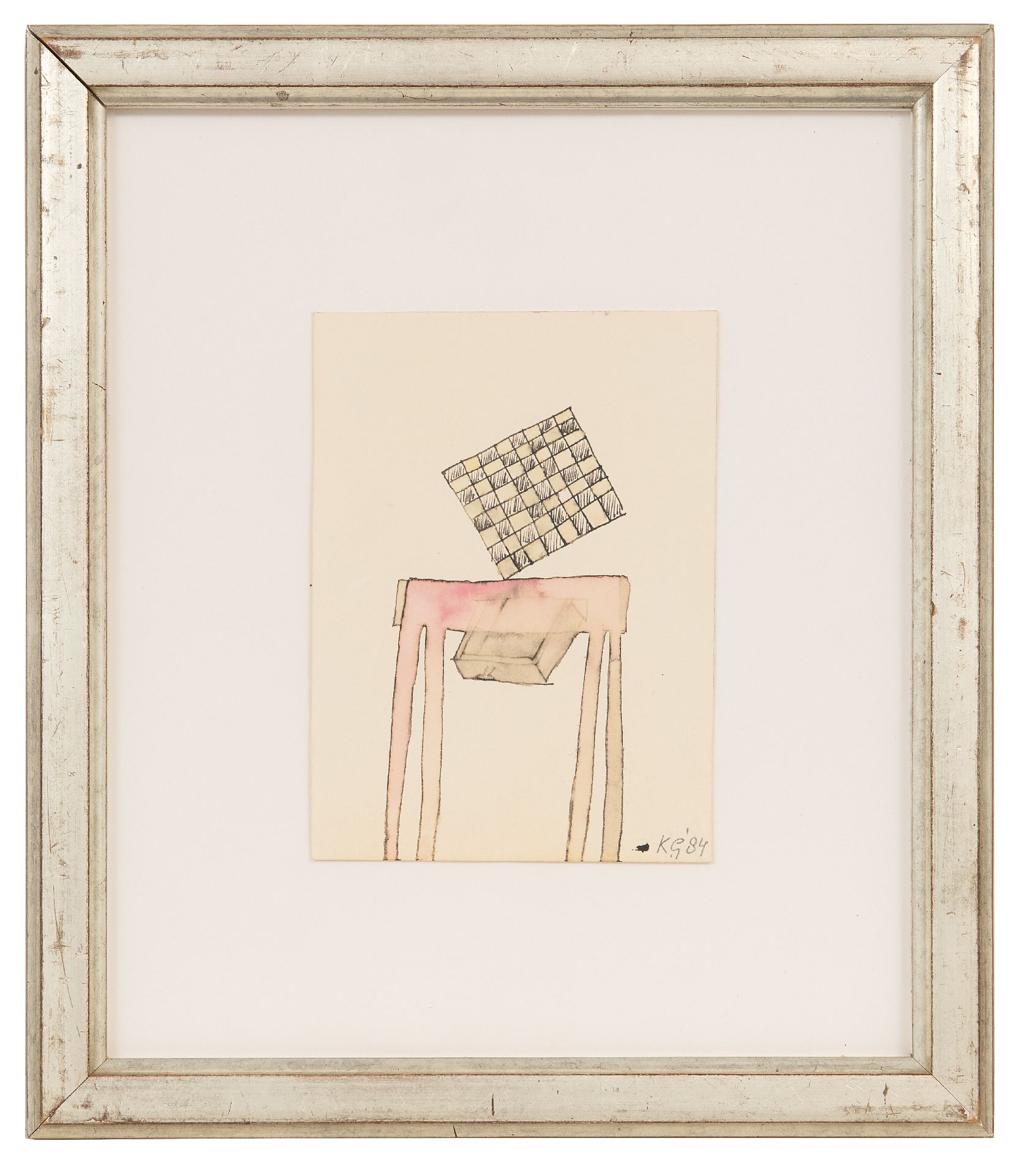 inkt en aquarel op papier 13,6 x 10,0 cm, gesigneerd r.o met initialen en gedateerd '84