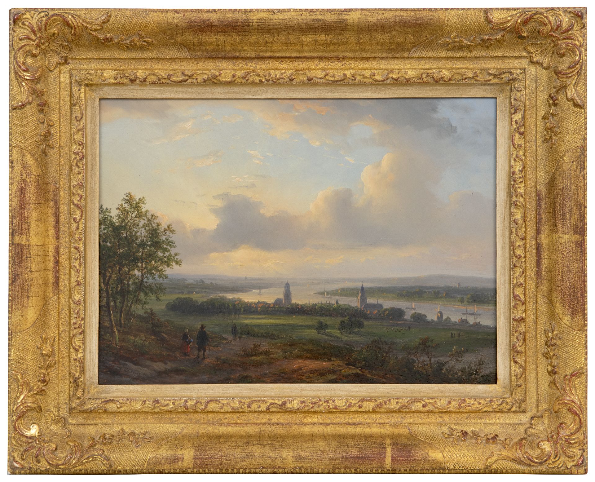 Lodewijk Johannes Kleijn kunstwerk • schilderij • te koop Gezicht op de Rijn bij Arnhem