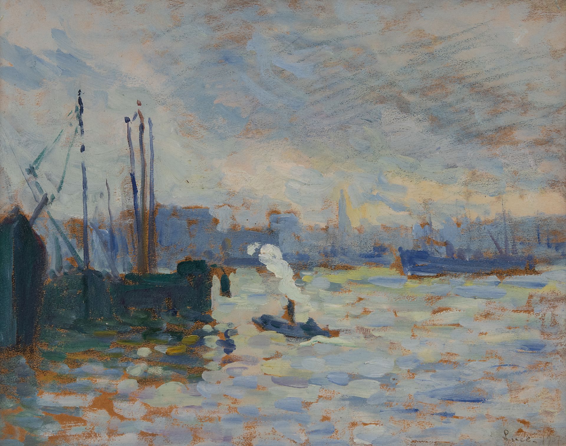 Maximilien Luce kunstwerk • schilderij • te koop De Maas bij Feijenoord, Rotterdam