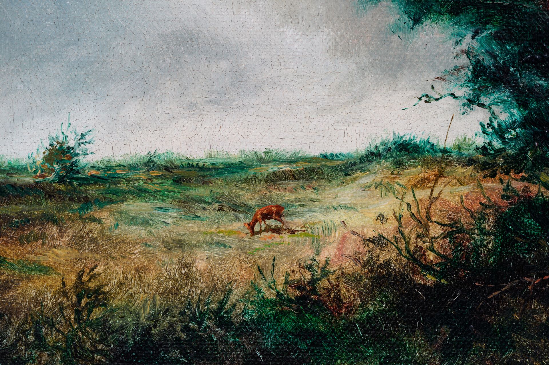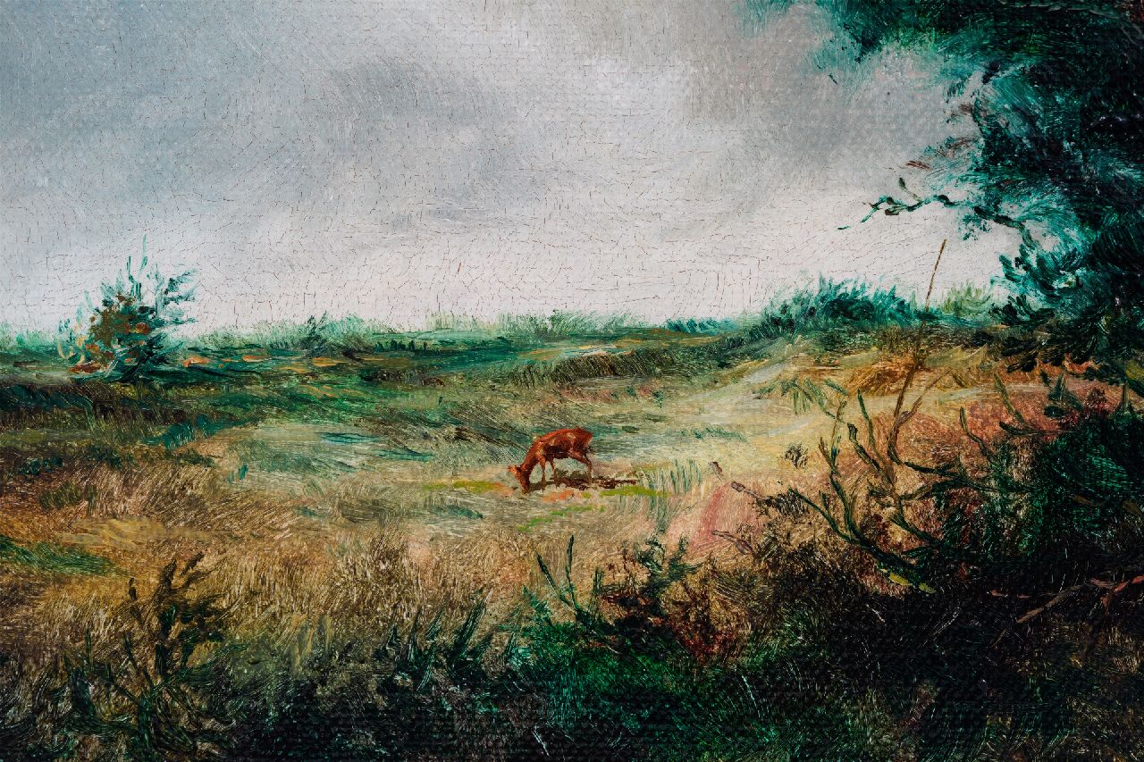 Rien Poortvliet kunstwerk • schilderij • voorheen te koop Landschap met grazend reetje