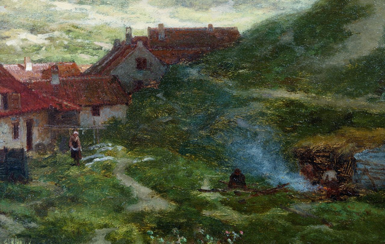 Salomon Verveer kunstwerk • schilderij • te koop Oud Scheveningen gezien vanaf een duintop