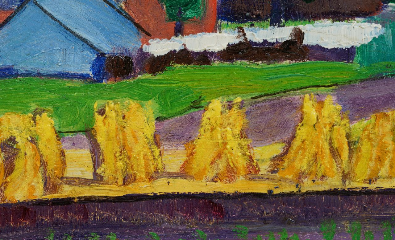 Vilmos Huszár kunstwerk • schilderij • te koop Boerderijen in een glooiend landschap