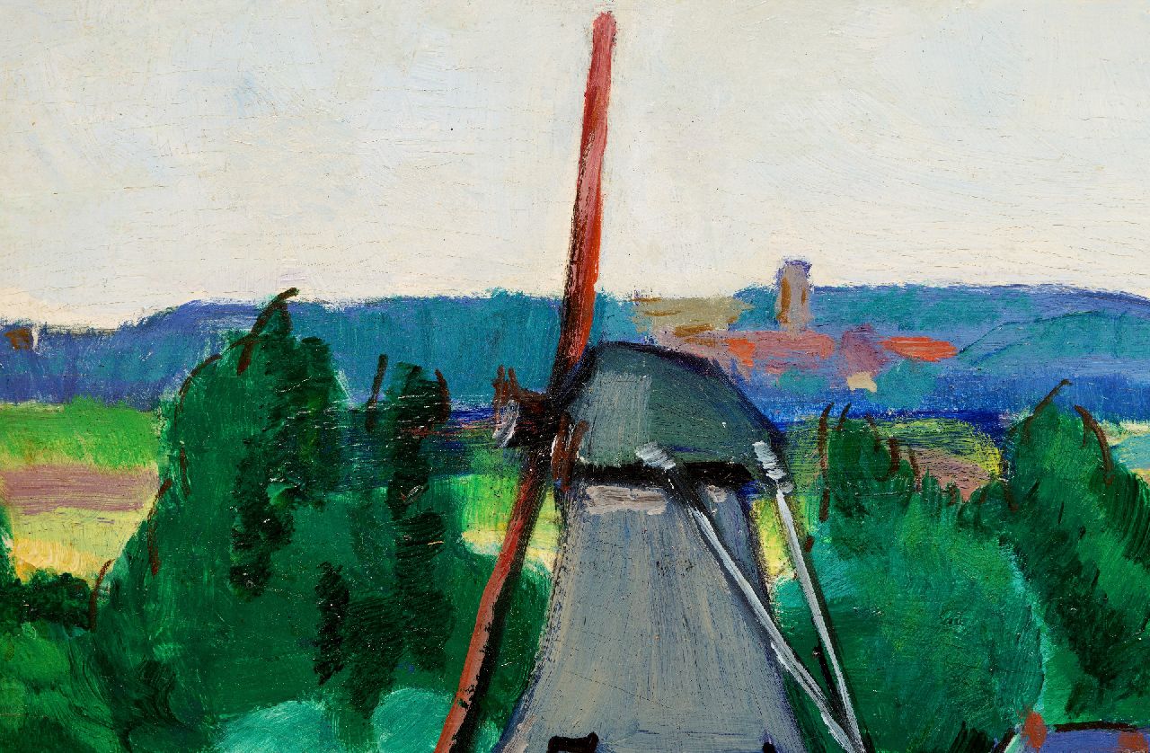 Dit schilderij hing op de eerste tentoonstelling die in ons land van Huszár gehouden werd.