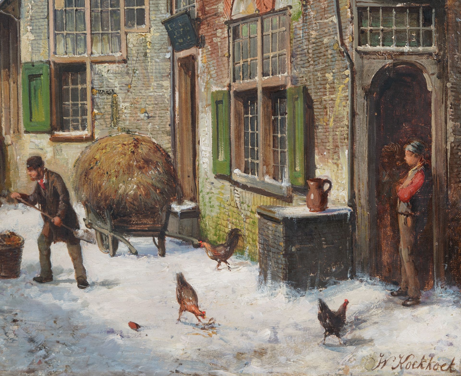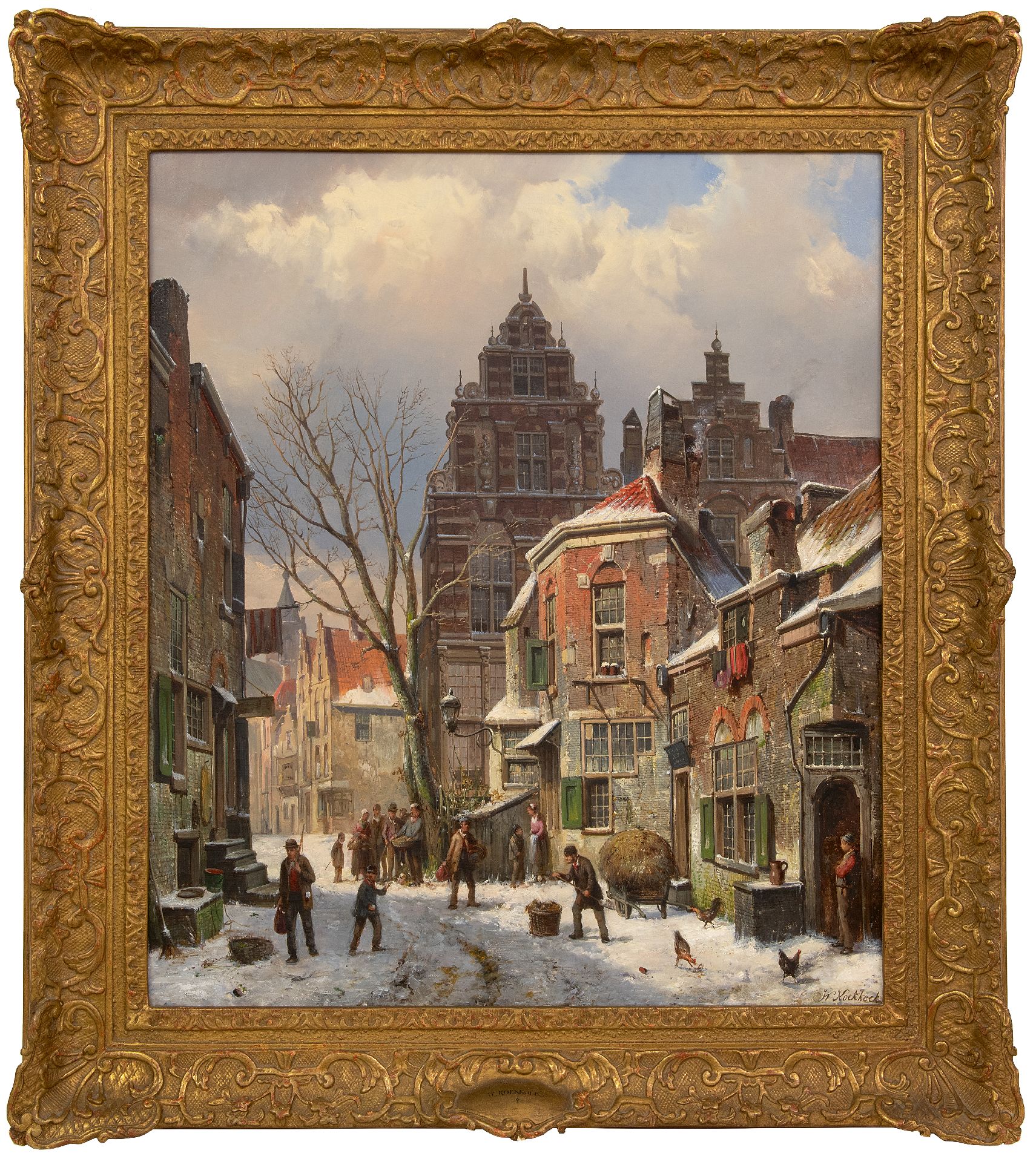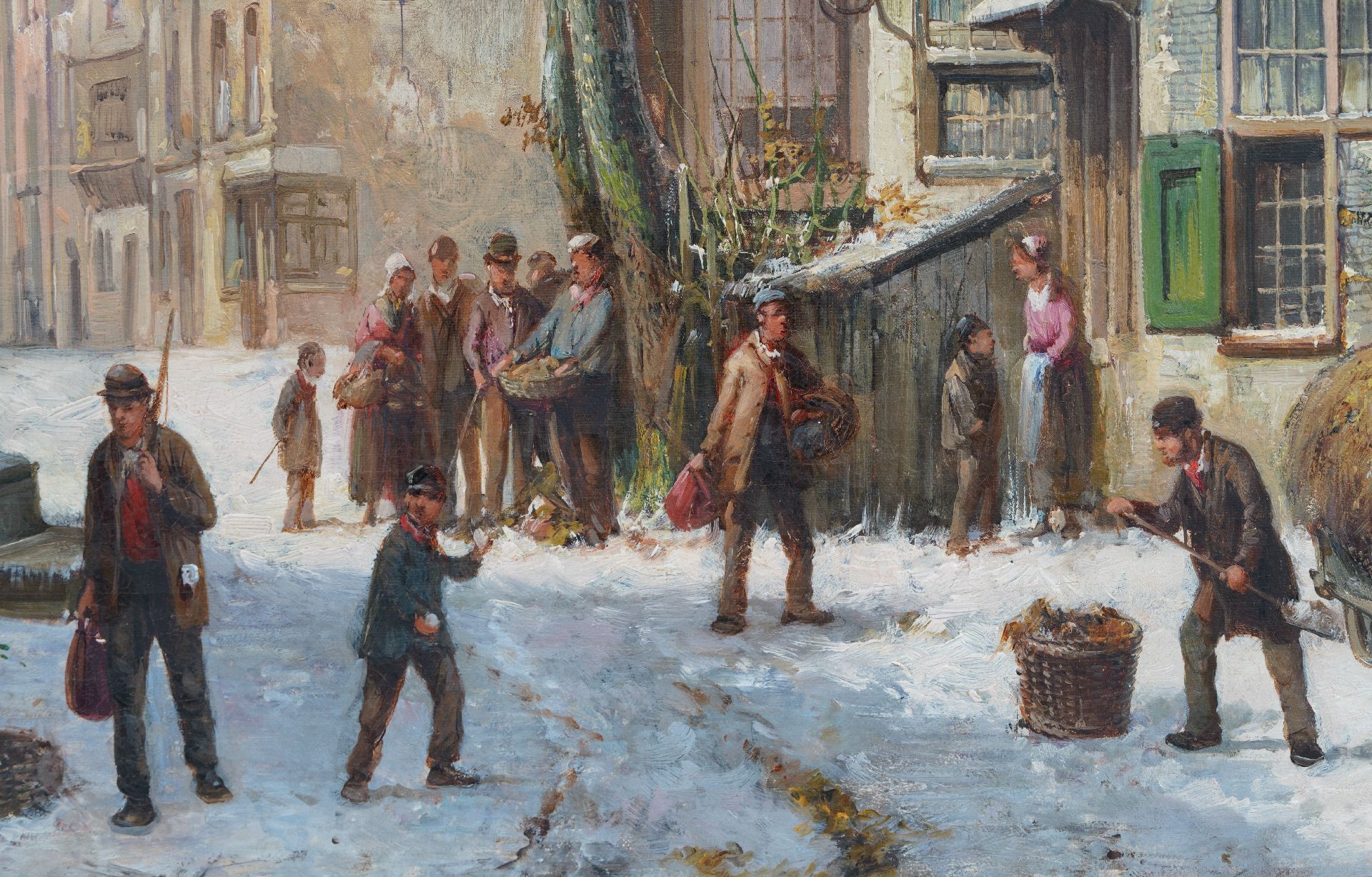 Willem Koekkoek kunstwerk • schilderij • voorheen te koop Bedrijvig straatje in de sneeuw