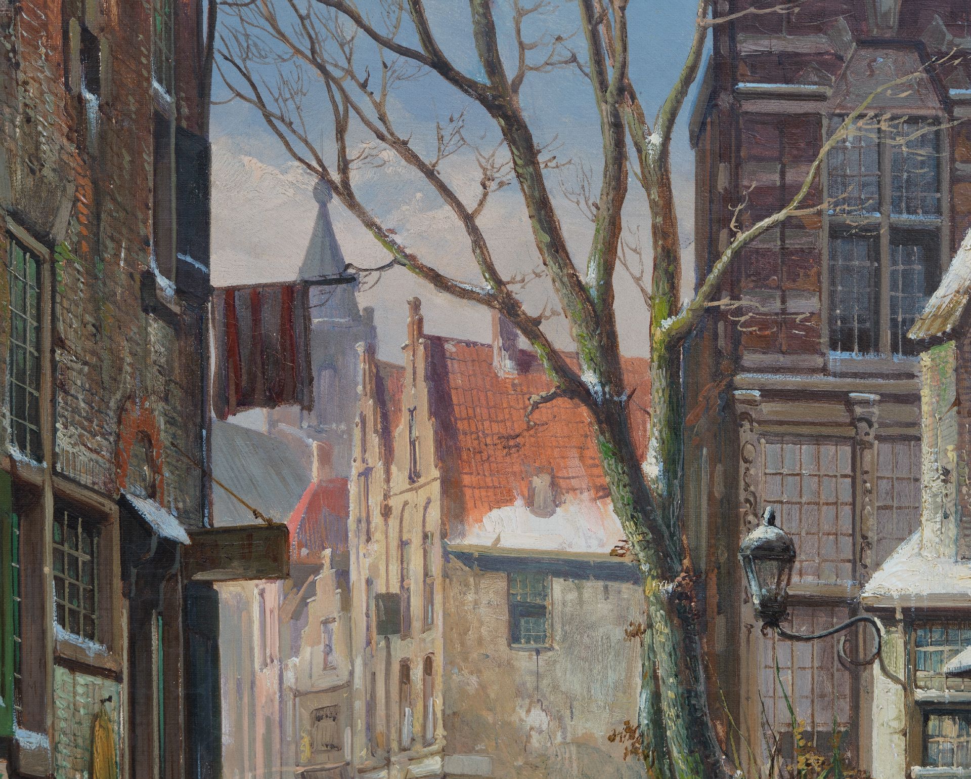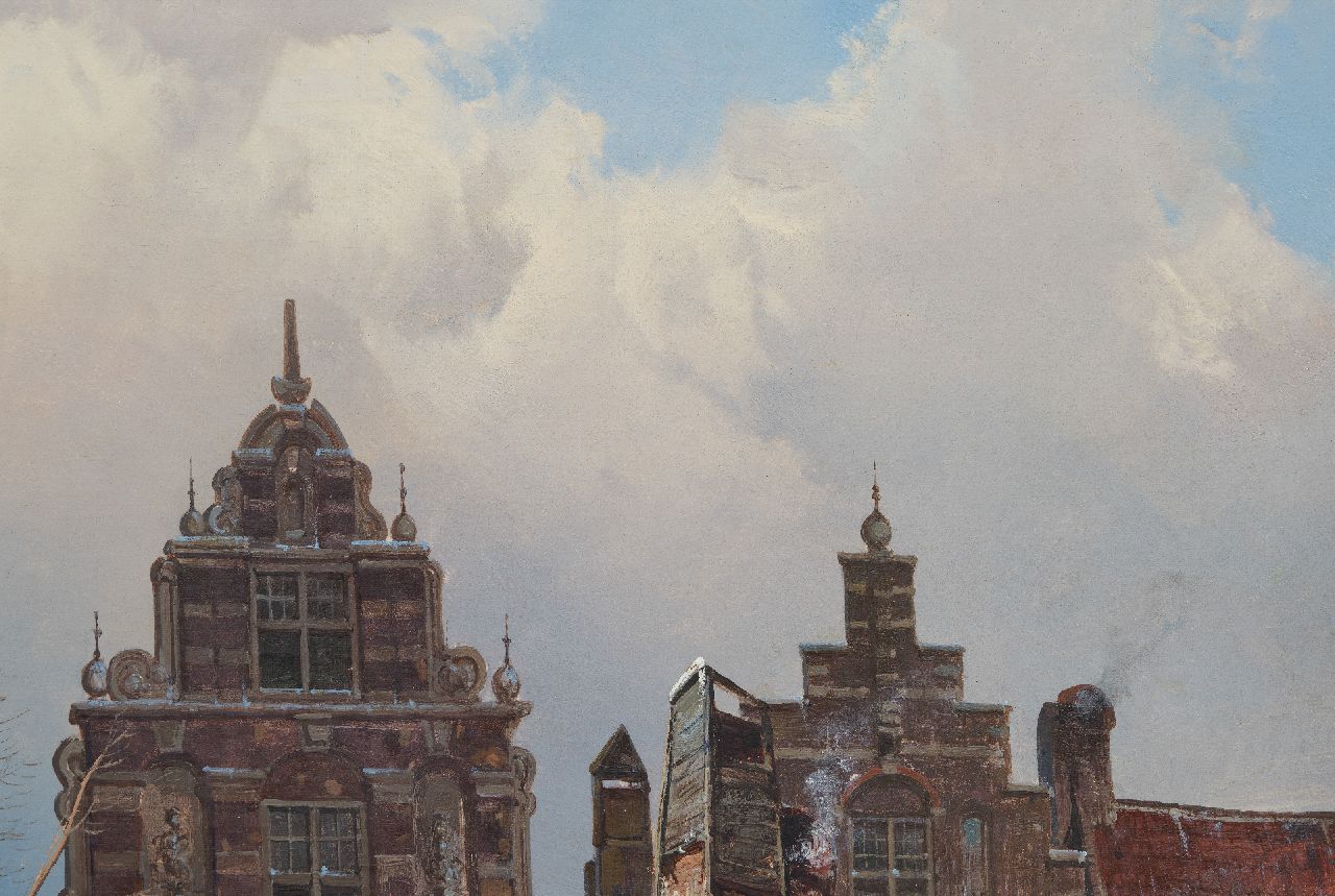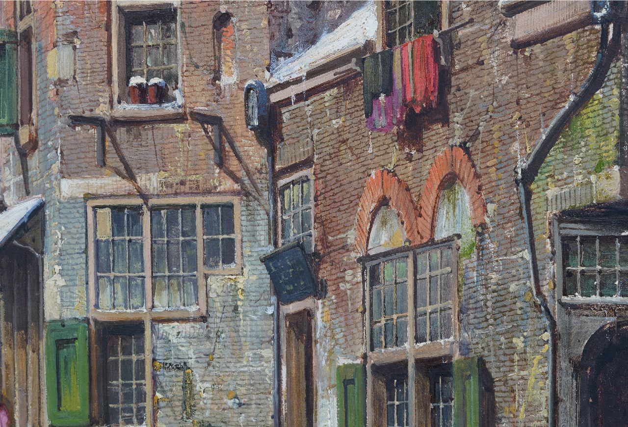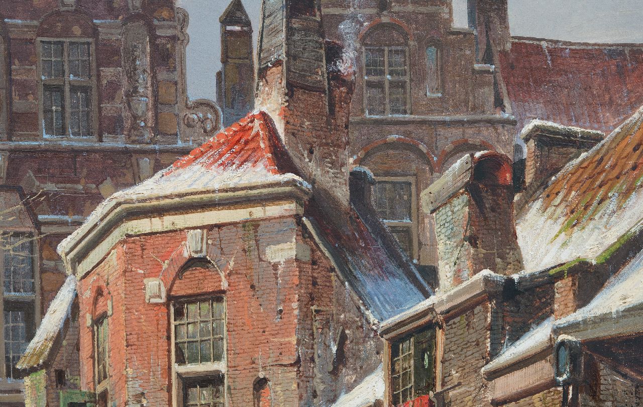 Willem Koekkoek kunstwerk • schilderij • voorheen te koop Bedrijvig straatje in de sneeuw