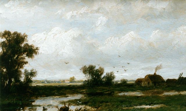 Romantic artist Anthonie Jacobus van Wijngaerdt was born in 1808 in Rotterdam, where he later studied with art teacher and painter Jacob de Meijer. De Meijer’s forest scenes served as the model for many of Van Wijngaerdt’s own romantic landscapes, in which trees were a dominant feature. To gain inspiration, Van Wijngaerdt made several study trips (in 1833 and 1838) to the German Rhine basin, and to Belgium (1840). From 1836 until 1861 he lived in Gouda, where he worked as an art instructor at the Stadstekenschool until 1857. After that he moved to Haarlem.
