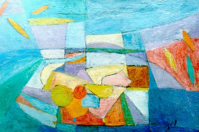 From his early years, Geer van Velde, a native of The Hague, frequently explored the natural surroundings of his hometown, sketching and drawing. After primary school, he and his older brother Bram, who later also became a painter, apprenticed at a painting and decorating studio. There, the students were encouraged to develop their drawing talent; they were involved in the restoration of old master paintings and instructed in colour theory. It was the light that particularly appealed to Van Velde in the works of the old masters and would dominate his later work. When Van Velde moved to Paris with his brother in 1925, as many young painters did at the time, he worked in an expressionist style and a multi-coloured palette with human and animal figures. Influenced by painters such as Mondrian, Le Corbusier, Fernand Leger, Kandinsky, and Paul Klee, his style evolved over the years from figurative to lyrical-abstract. The radical change began when he moved to Cagnes-sur-Mer in the south of France in 1938. There, he abandoned figuration and, influenced by the light he observed there, developed a unique abstract visual language in which he attempted to depict lines and geometric planes in matte tones within a balanced composition. He employed a specialized working method for this. He prepared the canvas with several layers of zinc white and then mounted it on a wooden board. He then drew the composition in lines with charcoal, which was then mixed with the zinc white. Next, the oil was removed from the resulting top layer with newspaper. Only then did he apply the colours and planes in oil paint. Once this was dry, he sanded the paint layer with pumice stone, after which he painted over it again. Finally, the paint surface of the resulting painting was matte and did not reflect the light directly, but absorbed it, making various colour intensities visible to the eye. Van Velde was friends with Pierre Bonnard, among others, who introduced him to the later famous gallery owner Maeght in Paris, who exhibited his work in 1946, 1948, and 1952. Through another friend, the Irish playwright Samuel Beckett, Van Velde received an offer to exhibit at Peggy Guggenheim's gallery in London, where she purchased his work. Van Velde would remain in France until his death in 1977 and is considered a pioneer of abstract art in Europe whose work has had a lasting influence.