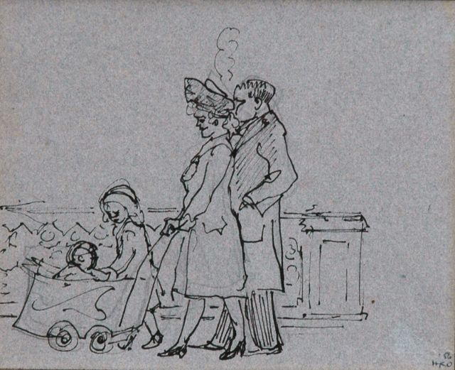 In 1923, Harm and his uncle Dolf made a tour to Asia, visiting the Dutch East Indies, China and Japan. This trip would determine the direction Kamerlingh Onnes would take. He was exceptionally fascinated by observing people and their behaviour. This was evident from the letters – illustrated with sketches – that he sent home and his drawings from that time are also often characterised by amusing irony. Once back in the Netherlands, Kamerlingh Onnes noticed that he found the human motif much more important than the ‘form’ of a painting. From 1925 onwards, his work became exclusively figurative and the everyday reality of his immediate environment became his subject. Harm Kamerlingh Onnes discovered his talent as a storyteller, who always made his observations from a different perspective, whether it was a landscape, still life, portrait or narrative genre piece. His view of everyday life was unbiased and often surrounded by mild mockery and with an eye for detail and the ability to put things into perspective, he captured his characters on canvas. The humor and irony he uses forces the viewer to get the story out of the paintings themselves. For an interview in NRC in 1947 he was asked which subjects appealed to him most. His answer was: 'Mainly landscapes, sometimes portraits, also flowers, which my wife knows how to arrange successfully, and then also genre work as I see the people around me busy. Actually I could call these little pantomimes.'