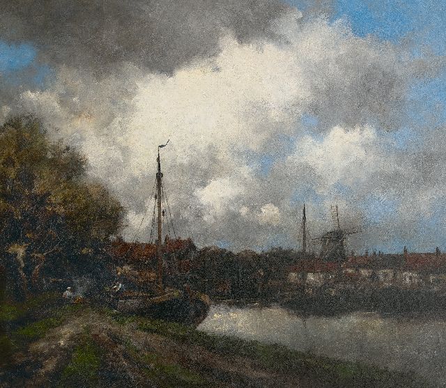 Of the four sons of Hermanus Koekkoek Sr, the oldest, Hermanus Jr, followed in the footsteps of his father, and with that of his grandfather. As usual in the Koekkoek family, he learned the trade from his father. After that he painted romantic seascapes with ships for at least twenty years, both in wild and calm water. The painter seems to have a great preference for a strong breeze in which the ships can barely keep course on turbulent waves. Like his father and grandfather, he sold a lot of work in England and this is probably why he was regularly found in London from the 1960s. In 1869 Hermanus jr moved permanently to this city, where he started an art trade and developed into one of the leading traders of his time. He mainly sold romantic paintings: masterpieces by his father Hermanus, his brother Barend Cornelis, his cousin Willem and his own navies. It is also known that he traded work by, for example, the landscape painter W. de Haas Hemken, by J.M.H. ten Kate and in the mid-seventies also the expensive and beloved cityscape painter Cornelis Springer. In this English period, the painter's work shows similarities with that of the Hague School painters, in particular by Jacob Maris, due to the looser touch and attention to a more atmospheric depiction of the Dutch landscape. His subjects then expand with Dutch beach scenes with bombs that are geared to the English market, cities on the water under high cloudy skies and ships off the English coast. He usually signs his paintings with 'J. van Couver'.