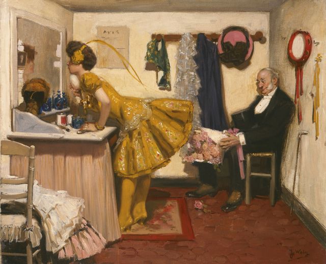 The French painter Jacques Wely did not grow old, but during his short painting career he mainly concentrated on painting figure and genre paintings, which were very successful due to their narrative content and humorous undertone. He paid a lot of attention to the upholstery of his interiors, which also indicates his quality as a still life painter.