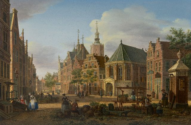 The Hague painter Paulus Constantijn la Fargue was born into an artistic family. His three brothers and sister chose an artistic career. It is not known who taught Paul Constantine. Presumably he was largely self-taught and practiced studying the work of older masters. This was not uncommon at the time. Like most topographical artists, la Fargue started out as a wallpaper painter. After 1757, he received sufficient commissions from the Hague art dealer Gerard Hoet to provide his brother Karel with work for a long time also.. Paul Constantine has painted, drawn and etched. He became especially famous with his topographical city portraits of The Hague, Rotterdam and Amsterdam. In doing so, he continued a tradition that began in the 17th century with Jan van der Heyden.
