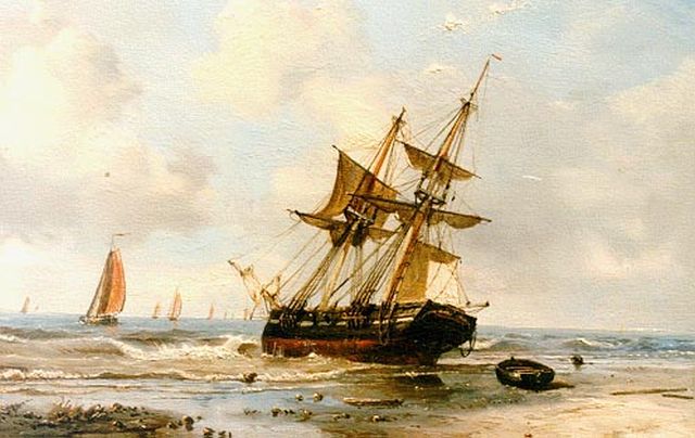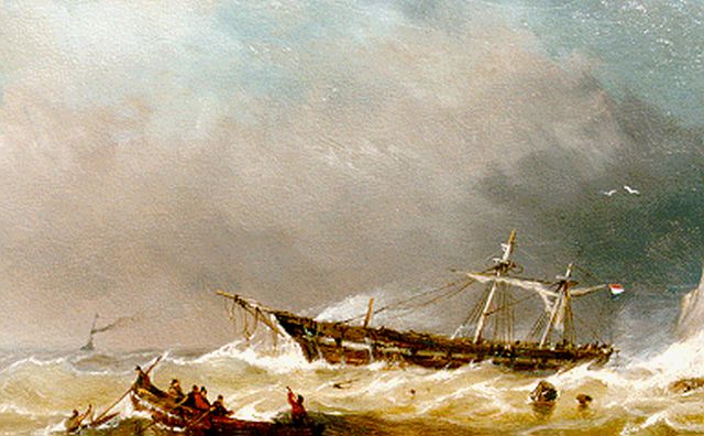 The Hague painter Petrus Paulus Schiedges developed after his studies at the Hague Academy of Arts as a painter of sea and river views with ships. Especially in his turbulent, romantic seas the influence of the celebrated marine painter Louis Meijer, from whom he received advice in the 1940s, can be seen. Schiedges made an accurate study of the different types of ships that in his time sailed the Dutch waters, so that he was able to show them in the smallest detail.