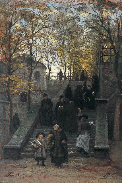 During his travels in Germany, Nakken became interested in simple folk life and in 1865 exhibited two genre pieces at the Exhibition of Living Masters in Amsterdam. Together with his friend Julius van de Sande Bakhuyzen, he traveled to Düsseldorf in the winter of that year to take lessons at the Düsseldorfer Malerschule, known for his training in the genre of painting. Once back in the Netherlands, Sadée, like Jozef Israëls and Blommers, discovered fishing life on the coast in Marken, Zandvoort and later Scheveningen. The fisherman genre, in which women occupies a large place, would become his main theme. In the months of September and October, Sadée was in Scheveningen to record the activity of the fishermen on the beach on the spot. Unlike other painters, who had a corner in their studio with fishing equipment, Sadée had his own home in Scheveningen.