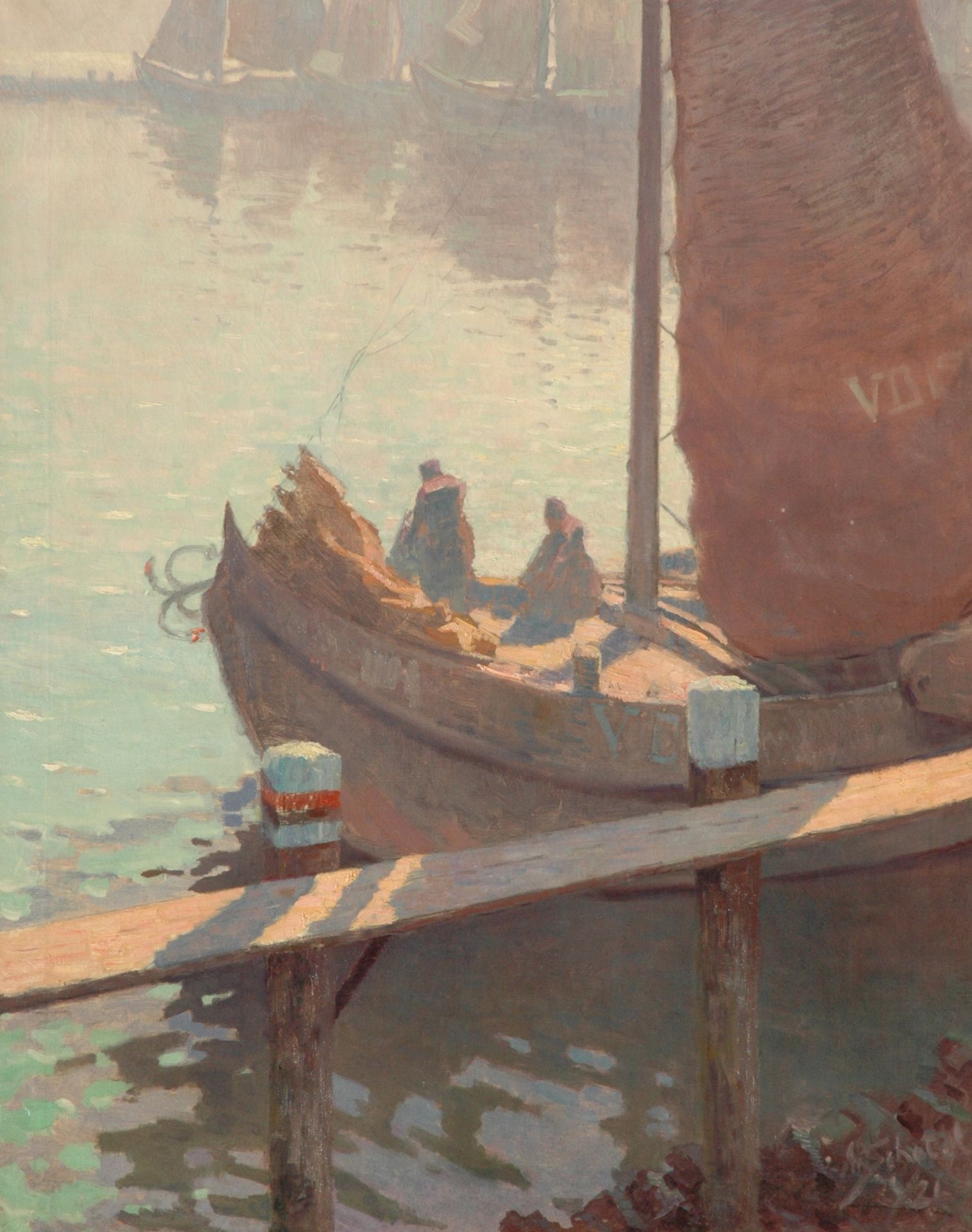 A.P. Schotel artwork • painting • previously for sale A fishing boat in the harbour of Volendam