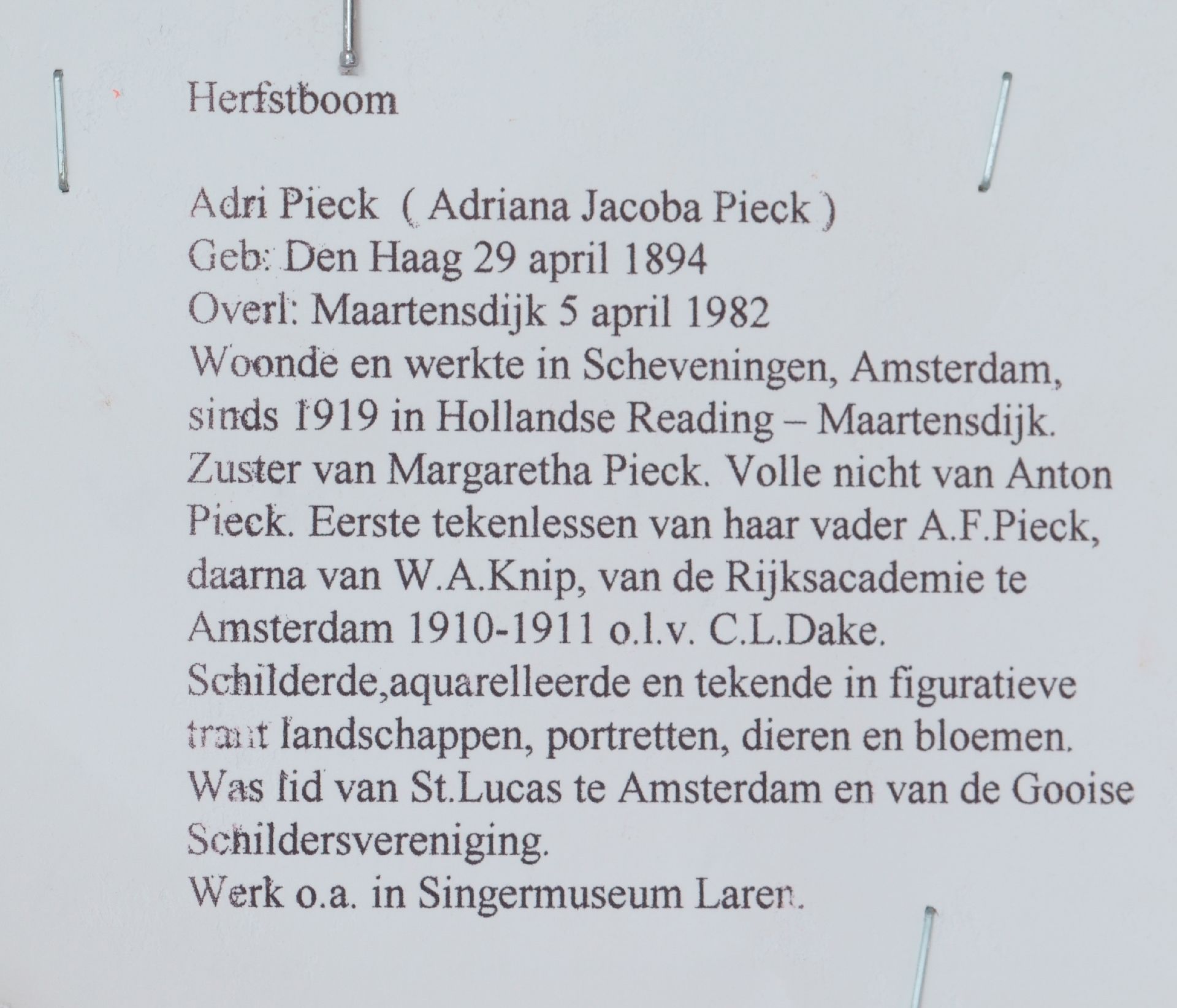 Adri Pieck artwork • painting • previously for sale Autumn tree