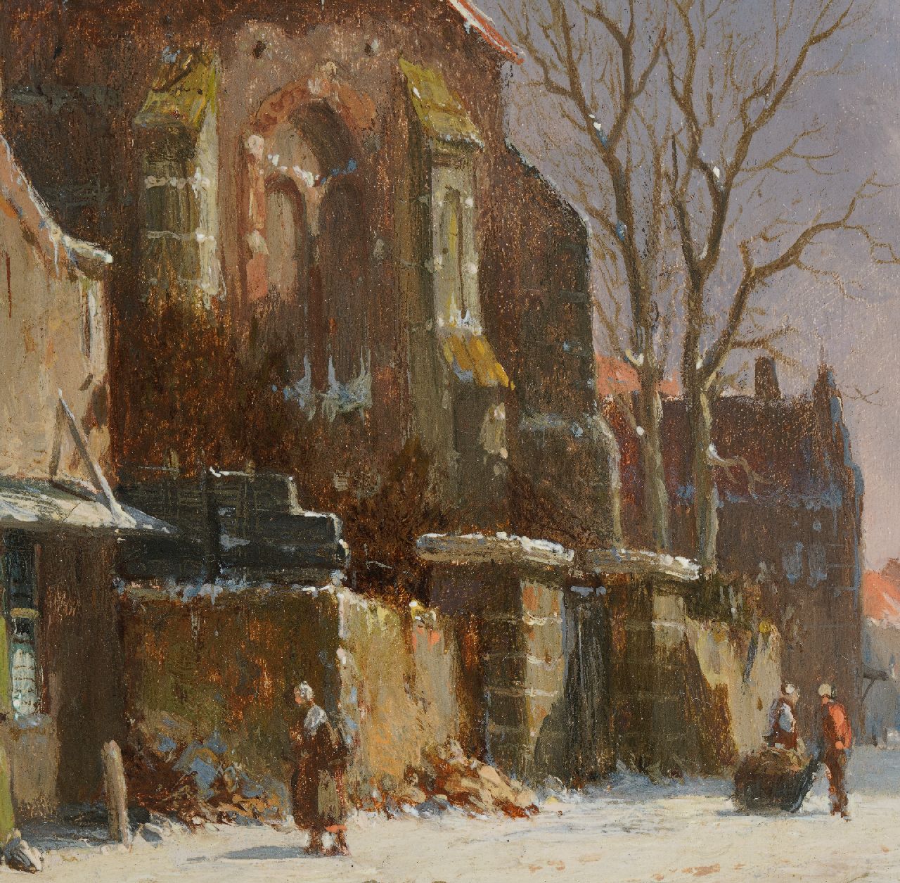 Adrianus Eversen artwork • painting • for sale Figures by a church gate in winter
