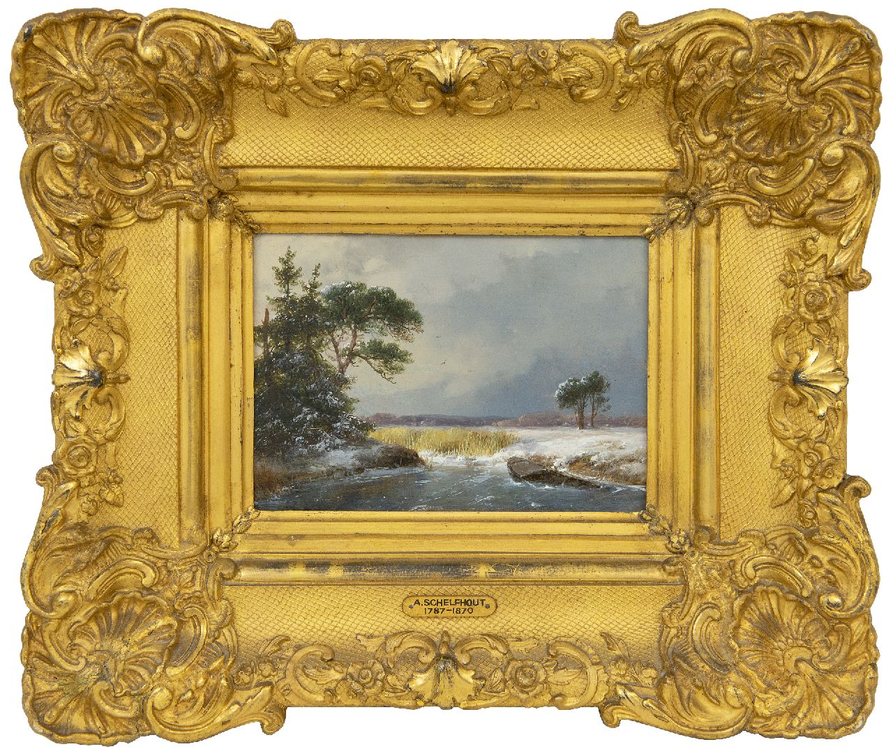 The winter scenes and summer landscapes of Andreas Schelfhout were already very popular in his days. He painted them carefully and with a strong sense of anecdotal detail. Schelfhout lived in The Hague his entire life, but to expand his arsenal of painting motifs he travelled around the Netherlands and abroad. During his travels, he would habitually fill up his sketchbooks with nature studies, which he would subsequently use in the composition of his landscapes at his studio. In the Netherlands, Schelfhout drew inspiration from, among other things, his trips along the North Sea coast and to Gelderland, specifically around Oosterbeek, Rhenen and Doorwerth. From there, he also visited the neighbouring hills around Cleves. Together with Barend Cornelis Koekkoek, Schelfhout is considered the Netherlands’ most important romantic landscape painter. He had many pupils, including Charles Leickert, L.J. Kleijn, Nicolaas Roosenboom and, surprisingly, the innovative impressionist J.B. Jongkind.