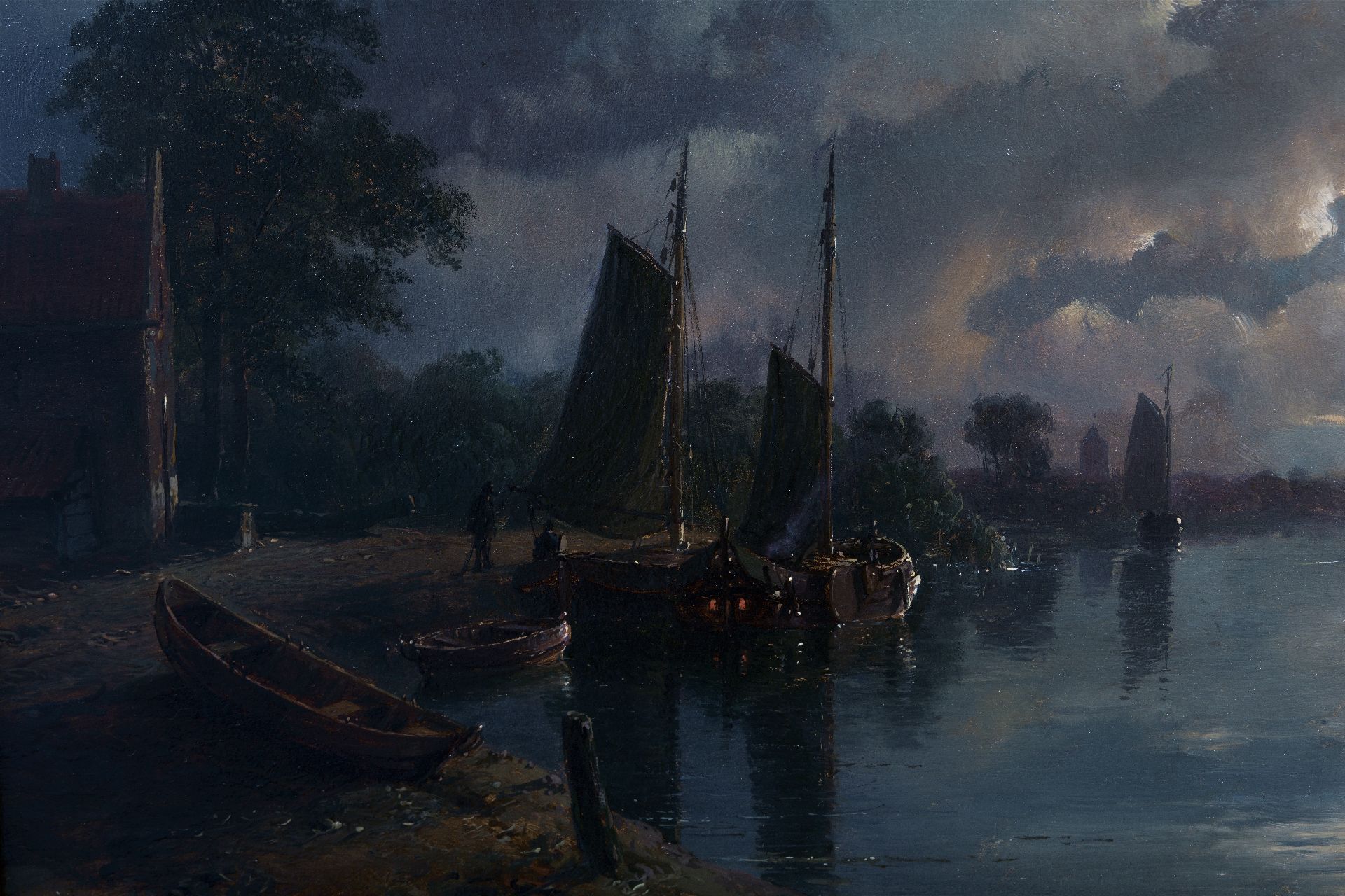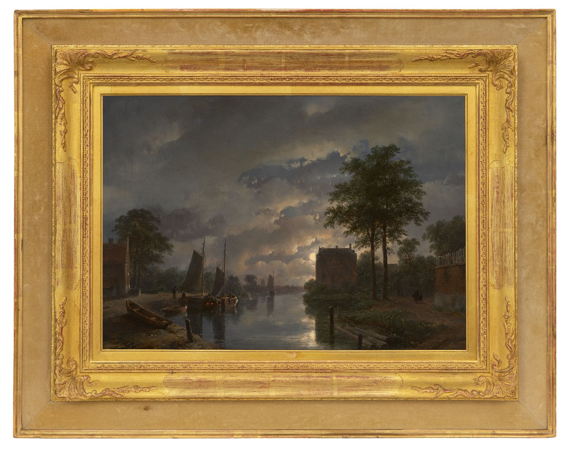 Andreas Schelfhout artwork • painting • previously for sale River view by moonlight