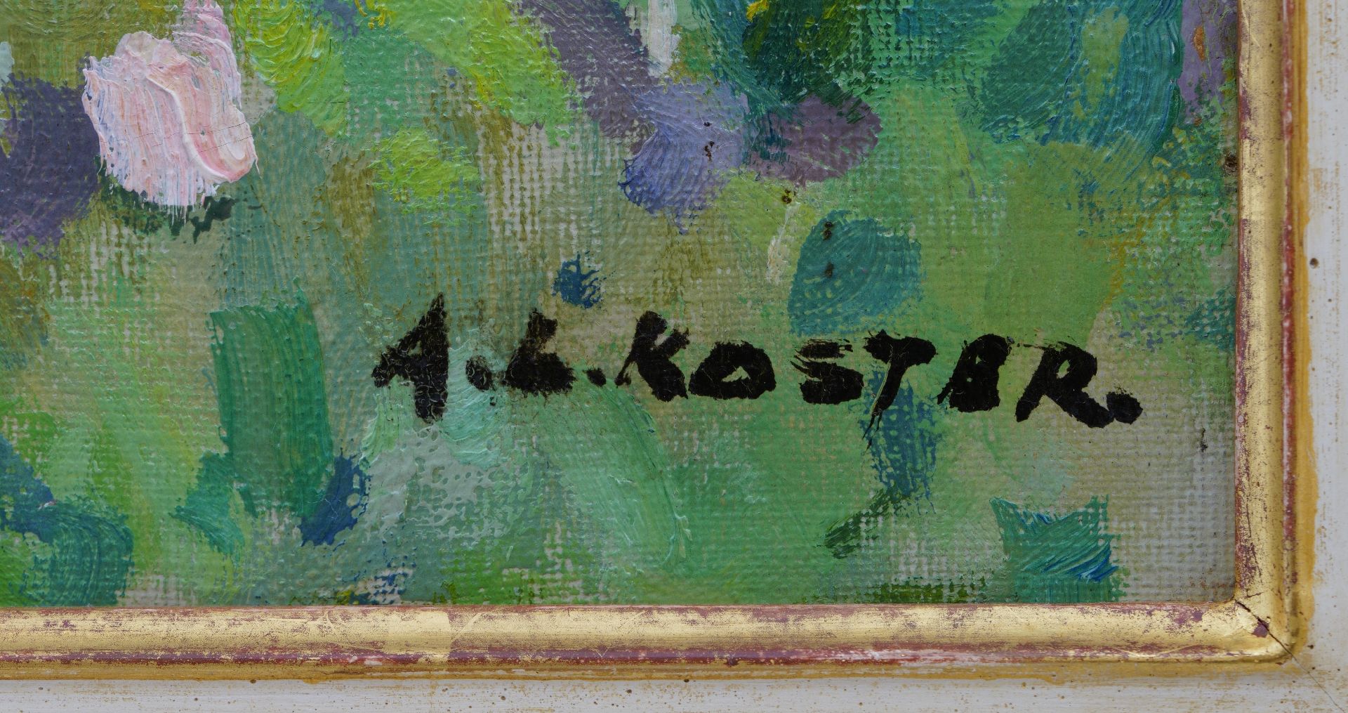 Every year, from March to the beginning of May, when the bulb fields in the vicinity of Heemstede were in bloom, Anton L. Koster went out to study them. With the invention of paint tubes, outdoor painting had been on the rise since the mid-19th century. Koster worked in the middle of the bulb fields with a folding chair and painter's box. He made his studies, no larger than 30 x 44 cm, on cloths, which he attached to the lid of the painter's box with thumbtacks, and then fixed them at home on a thick cardboard or panel. They served as an example for larger paintings that Koster made in his studio, but were also readily sold at that time because, in their spontaneity, they were often just as attractive as the finished paintings. Koster's paintings regularly showed a 'great heap', a reed shelf, piled up in a corner of the country. The reed was used three times. In the autumn, the newly planted bulbous plant was covered with it to prevent frost damage. In the spring, the reed was collected again and stacked in a shell and covered with a new layer of reed, to prevent rain and rotting. The bottom ten to thirty centimeters that lay for years was called 'poker'. The reed was usually of the lower quality. The first quality was - and still is - used for roofing. From the 1970s onwards, straw of wheat or barley was used to cover the bulbs and the reed sheaves have disappeared from the bulb landscape. With thanks to Arie L. Breure - Museum de Zwarte Tulp.