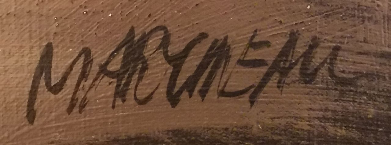 Martineau was a home and decorative painter before he devoted himself entirely to free painting. He painted vital, strong figures in a strong emotional style with dramatic brushwork and forms that border on the caricature. In recent years, his theme has focused primarily on dramatic situations between people and on contradictions: man-woman, love-hate, crying-laughing, life-death, which form the tragedy of life. Martineau thus shows himself to be an astute observer of reality, which he portrays in a humorous, almost absurd way.